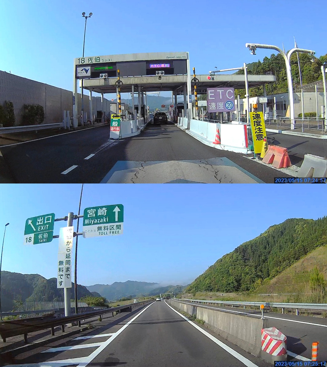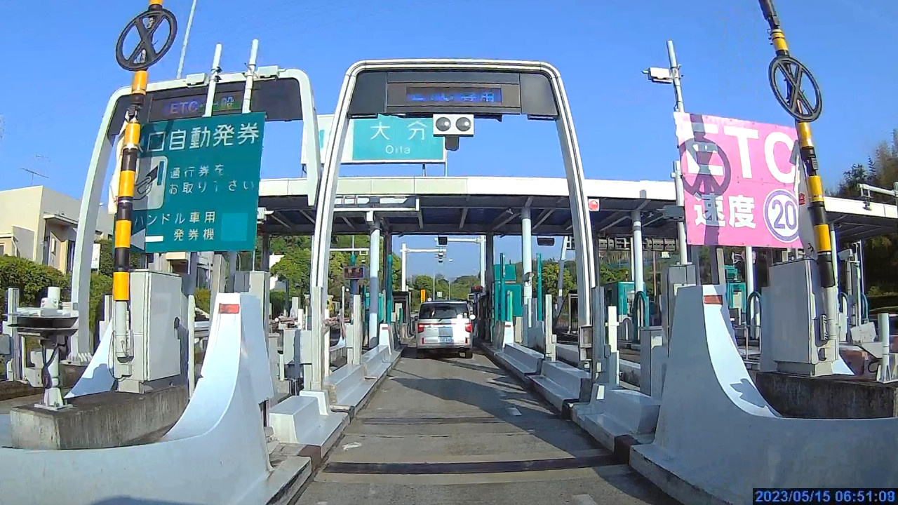 ![]() 佐伯料金所から先は無料区間です。無料の高速道路はいつ走っても嬉しいものです。良い天気になりました。 |