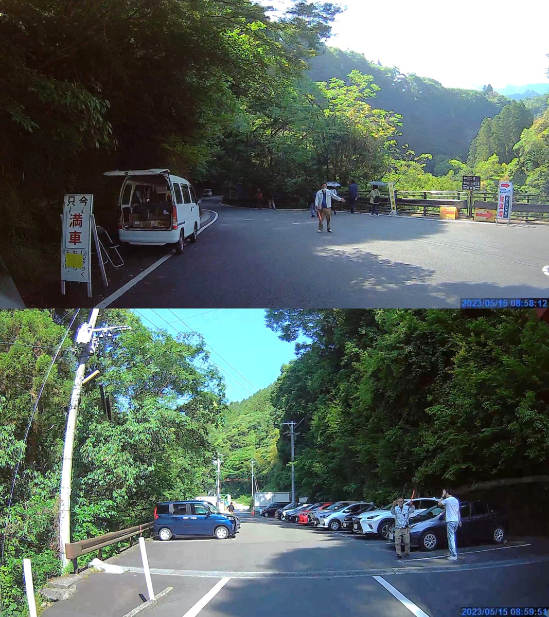 あららぎ駐車場に着くと、ここも混雑していて右端の本来駐車スペースではないところに駐めるよう指示されました。