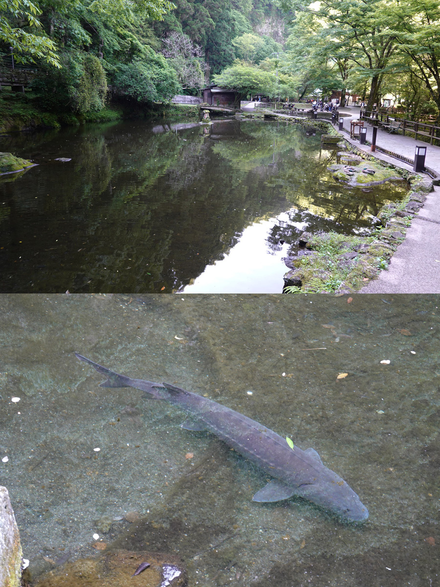 おのころ池です。大きな魚(チョウザメだそうです)がいました。