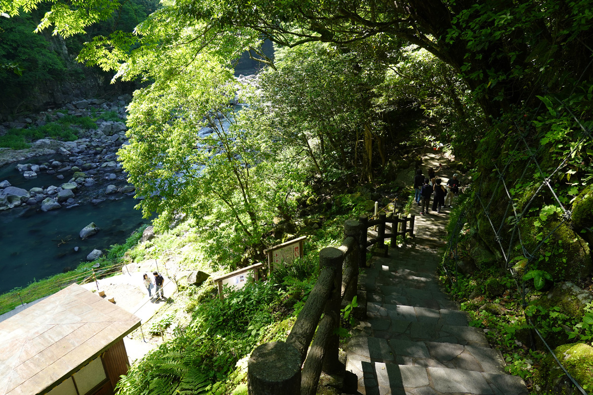 途中の水車小屋のあたりから遊歩道を下りて滝見台へ向かいました。