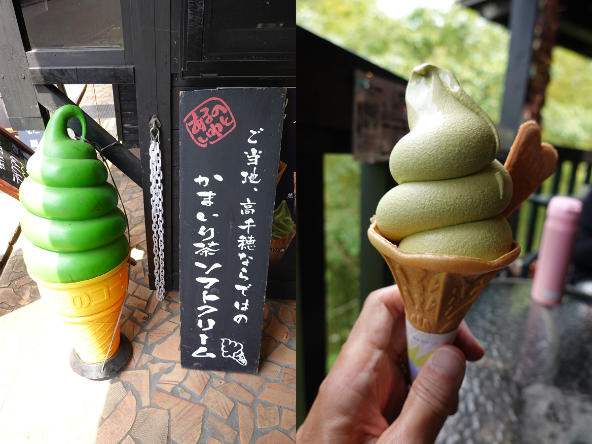 「あまてらすの隠れテラス」で「かまいり茶ソフトクリーム」を食べました。