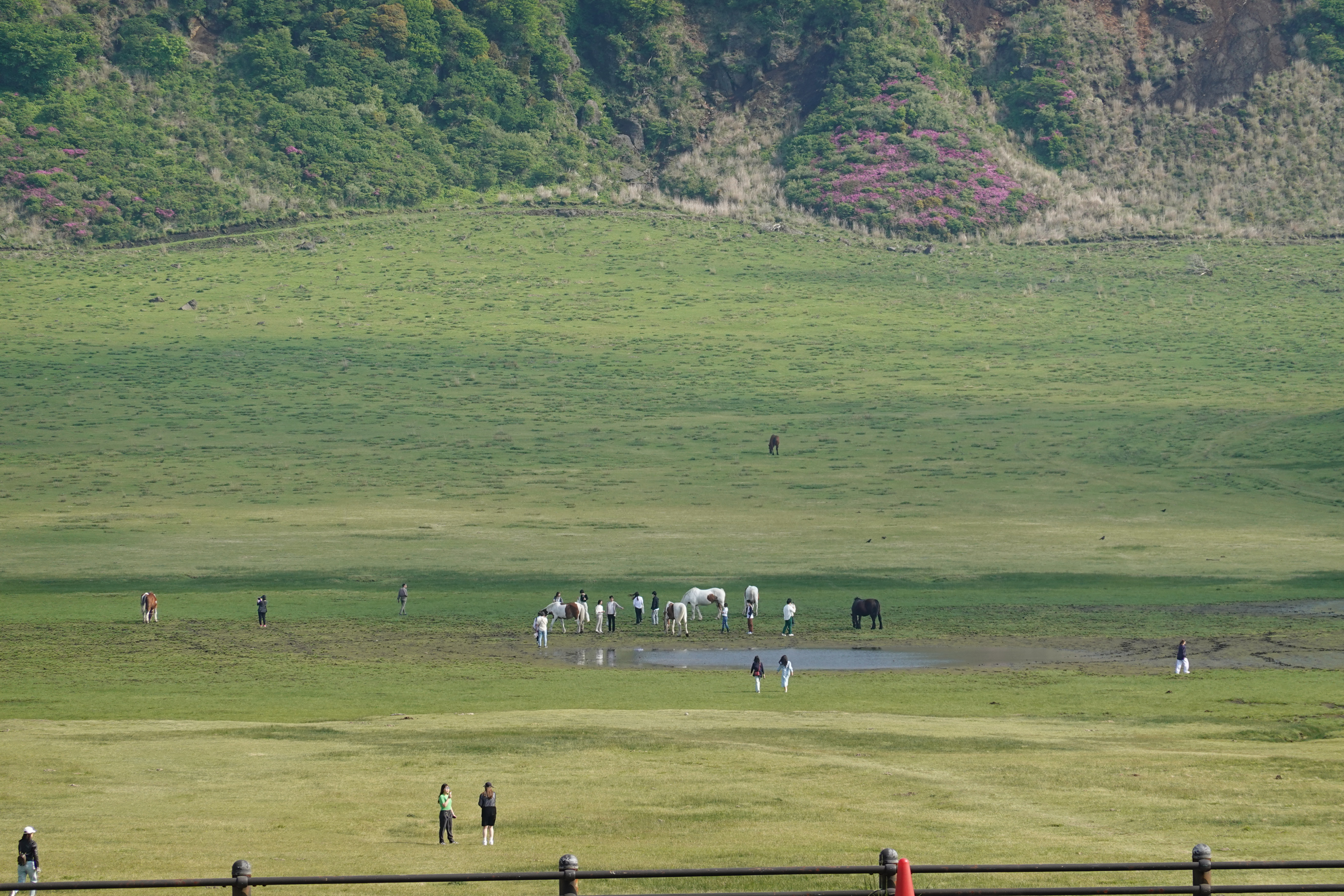 草原に馬がいます。ここには乗馬クラブがあり馬に乗れるそうです。