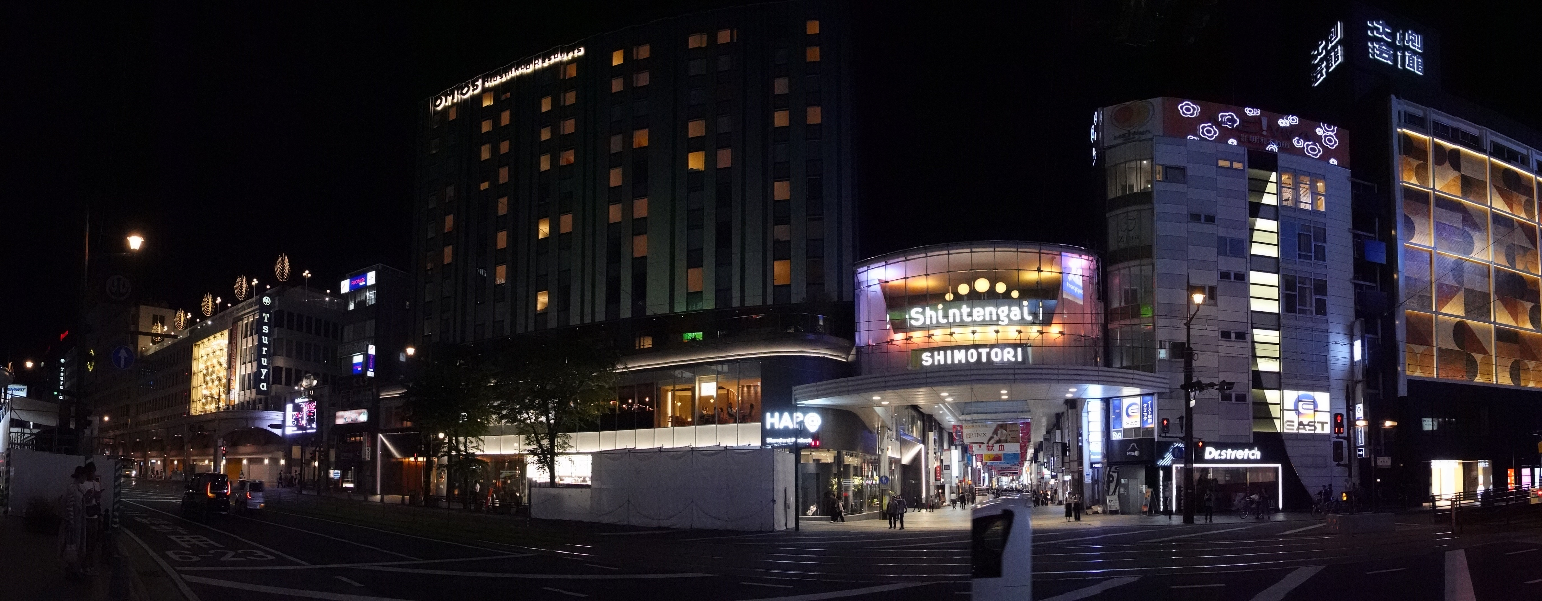 これは帰りに撮影。正面の下通入口の隣がHAB@です。3階から上は星野リゾートのOMO5熊本と言うホテルです。