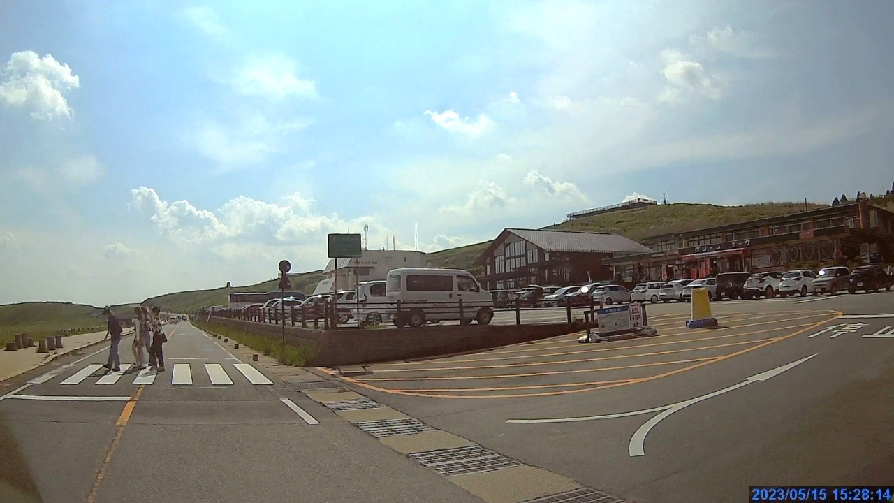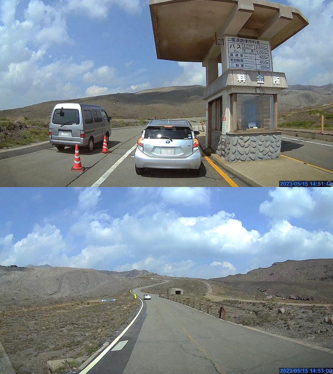 阿蘇山公園道路に入り火口へ向かいます。通行料は800円。火山活動が活発な時は通行禁止なのでしょう。問題なく入れてラッキー!。
