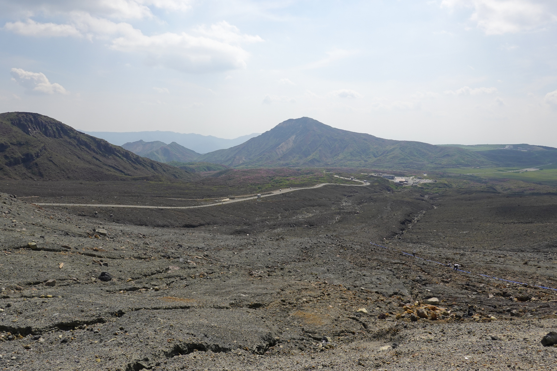 高千穂から50分ほど走ると正面に阿蘇山が見えてきました。南登山道から登って行きます。