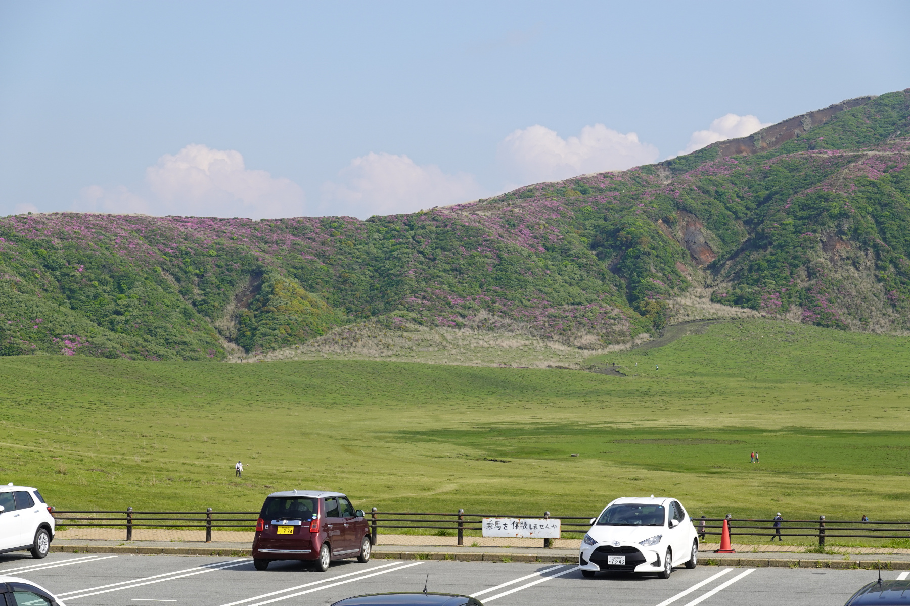 次に草千里に向かいました。先を急ぐので、ちょっと景色を眺めてコーヒー飲んで休憩だけですが駐車料金が500円。もっとゆったりしないともったいないですね。