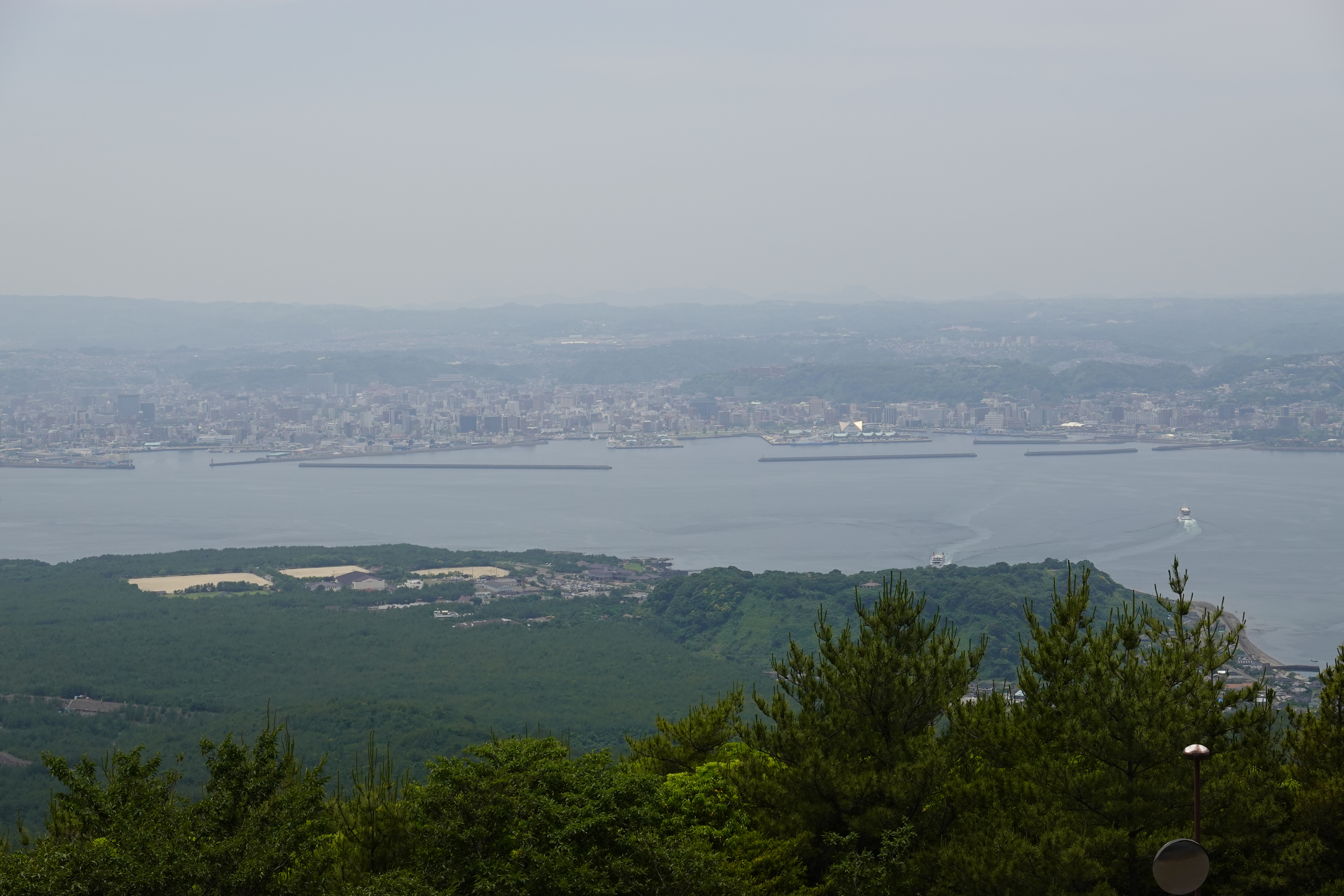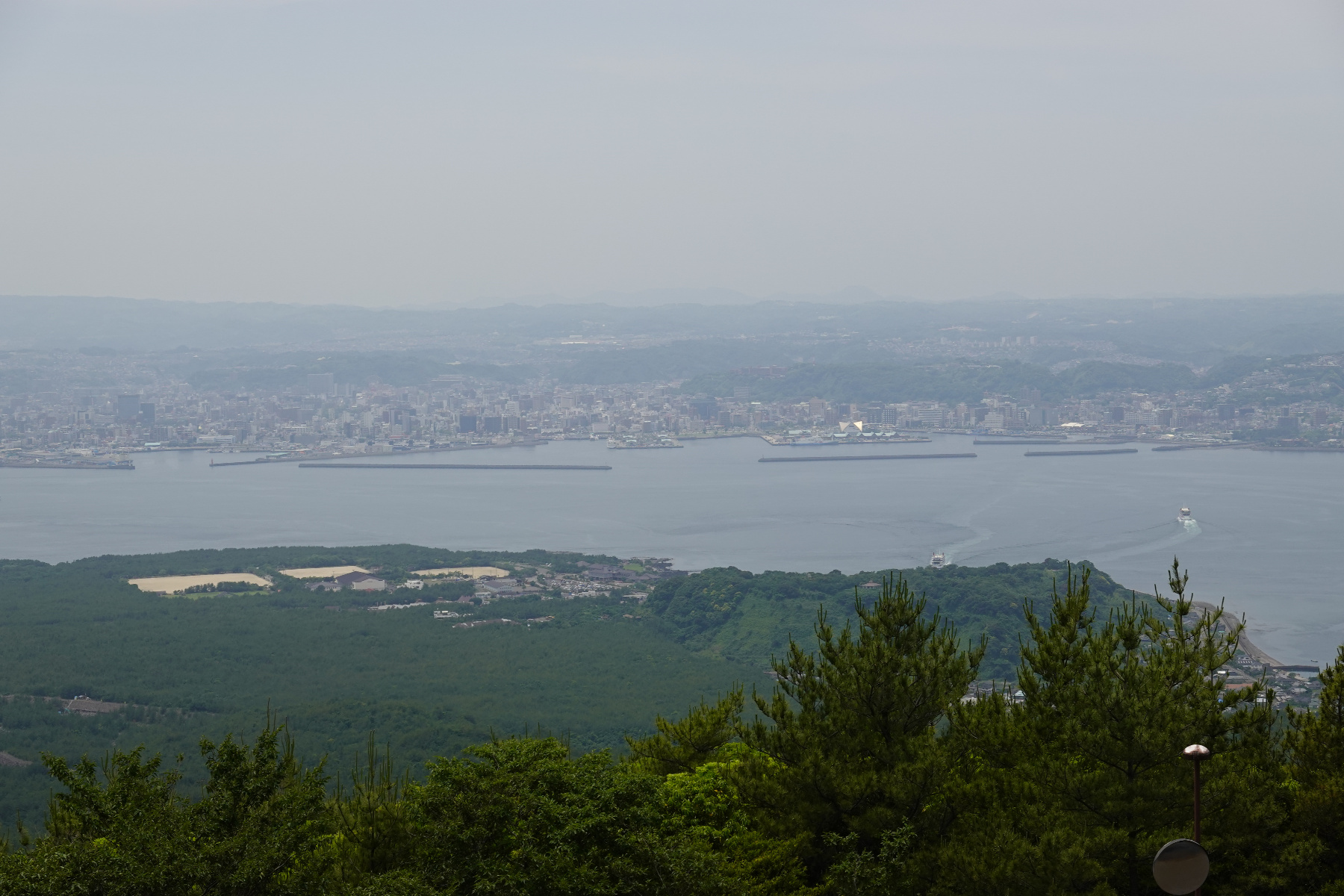 ここからは鹿児島市や鹿児島港が良く見えます。城山公園も見えているのでしょうけど、こちらから見ても霞んでますね。
