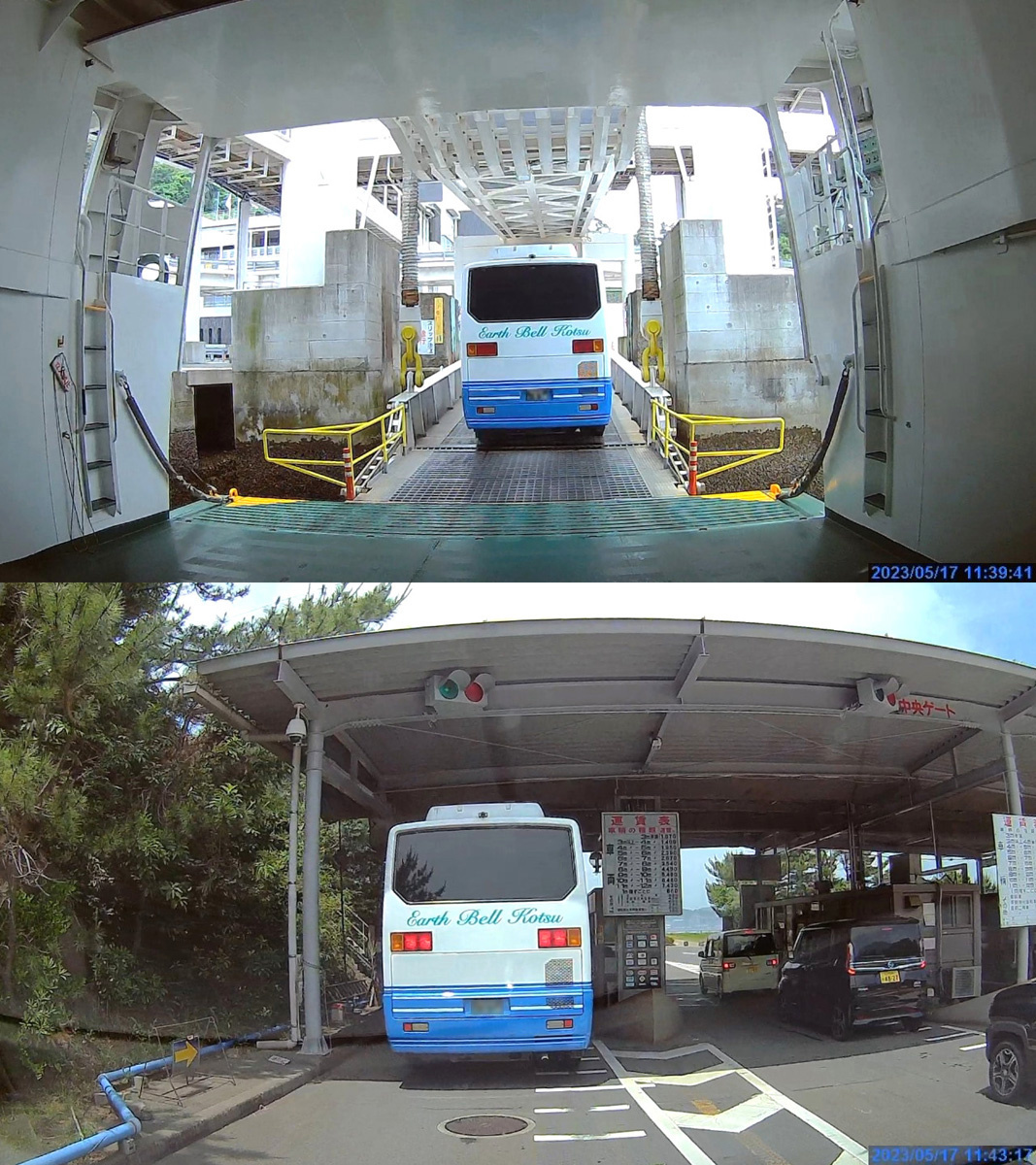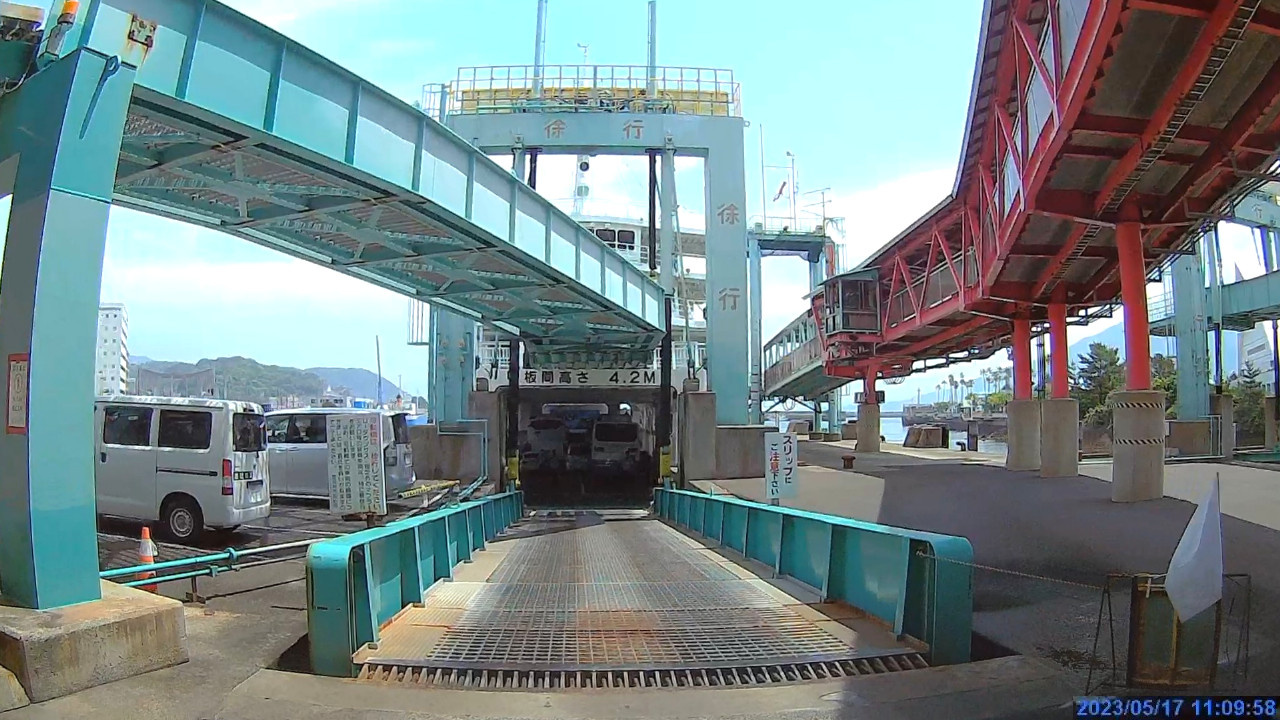 乗船から30分ほどで下船です。このフェリーは乗船時は乗るだけで、下りてから少し走ったところに料金所があり、そこで料金を払うシステムでした。