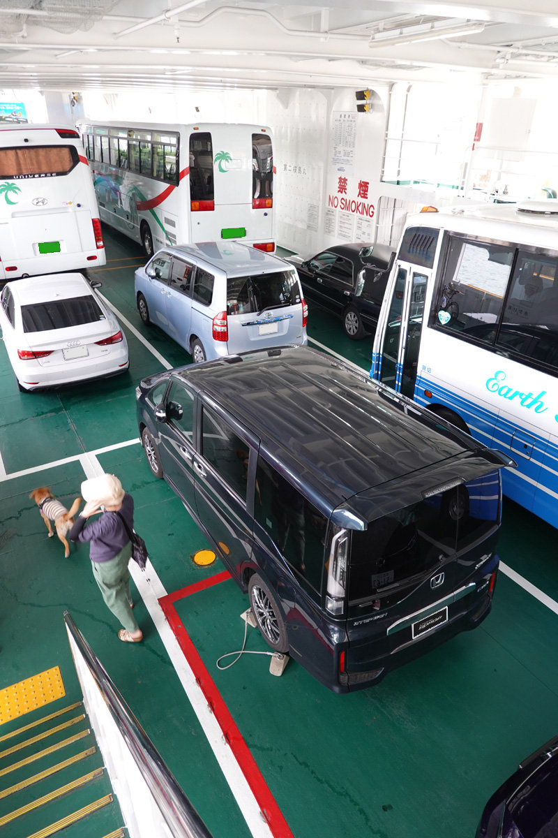 あまり大きな船ではないですが、大型バスも沢山乗ってました。