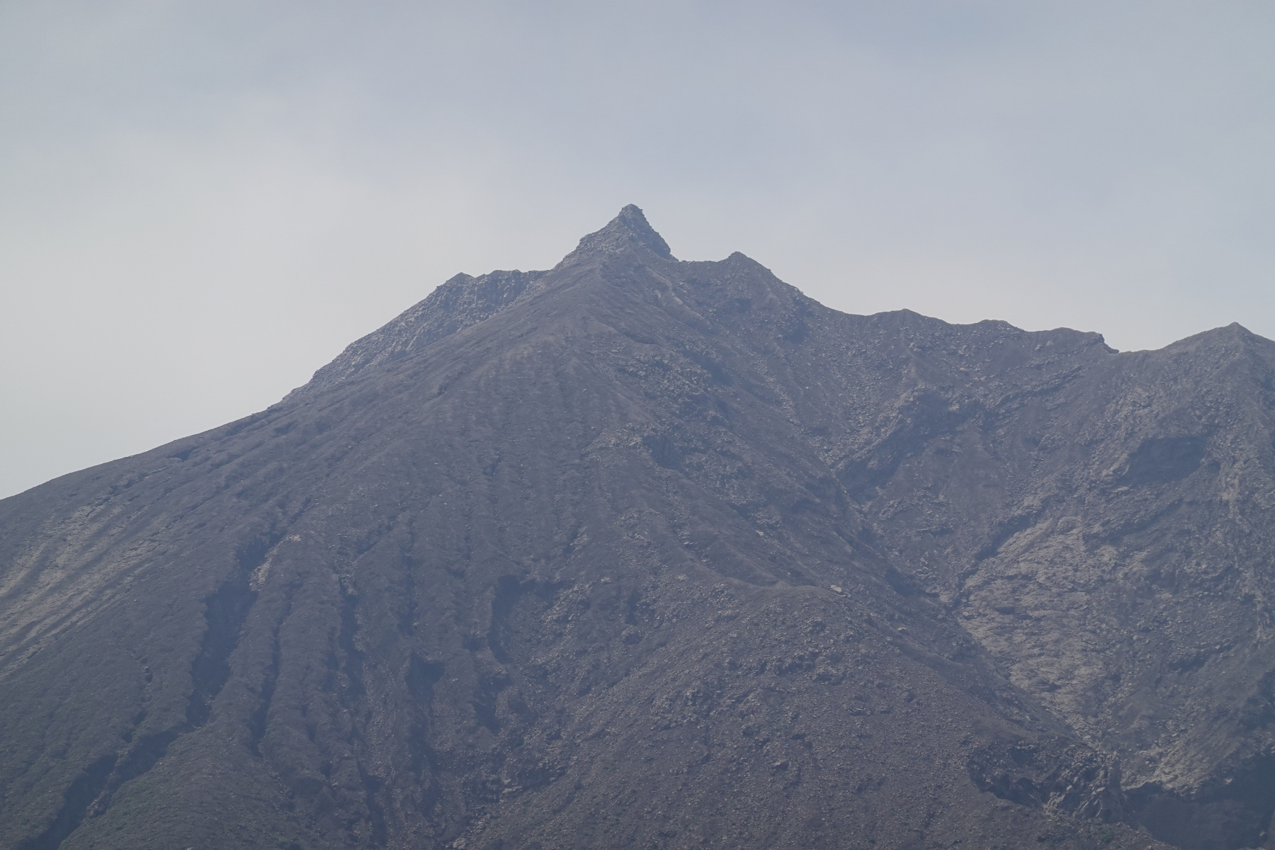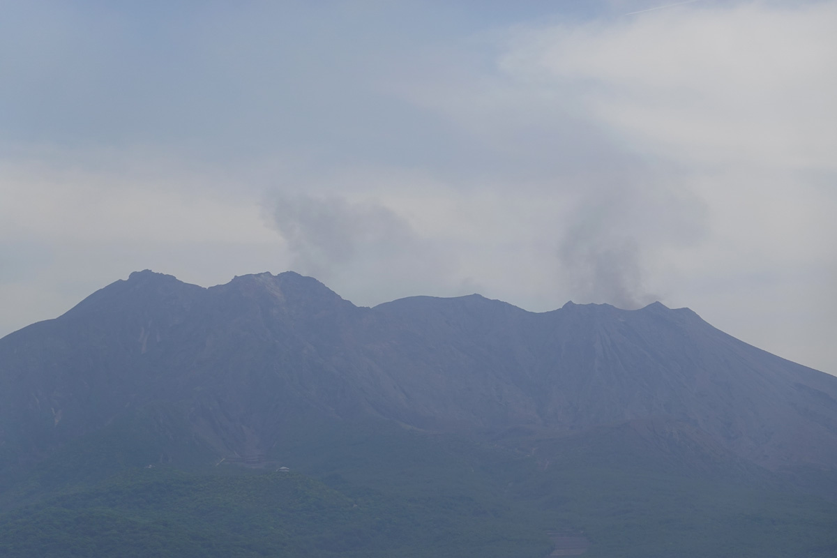 湯之平展望所から見た桜島。若干アップです。なお、現在噴煙を上げるのは南岳で、ここから見えるのは北岳の側です。