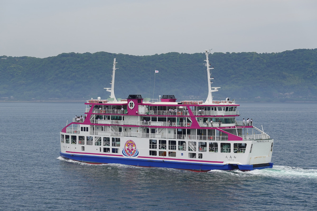 今回乗ったのは第二桜島丸。総トン数1,404トン、全長29m、全幅13.5m、旅客定員600名です。