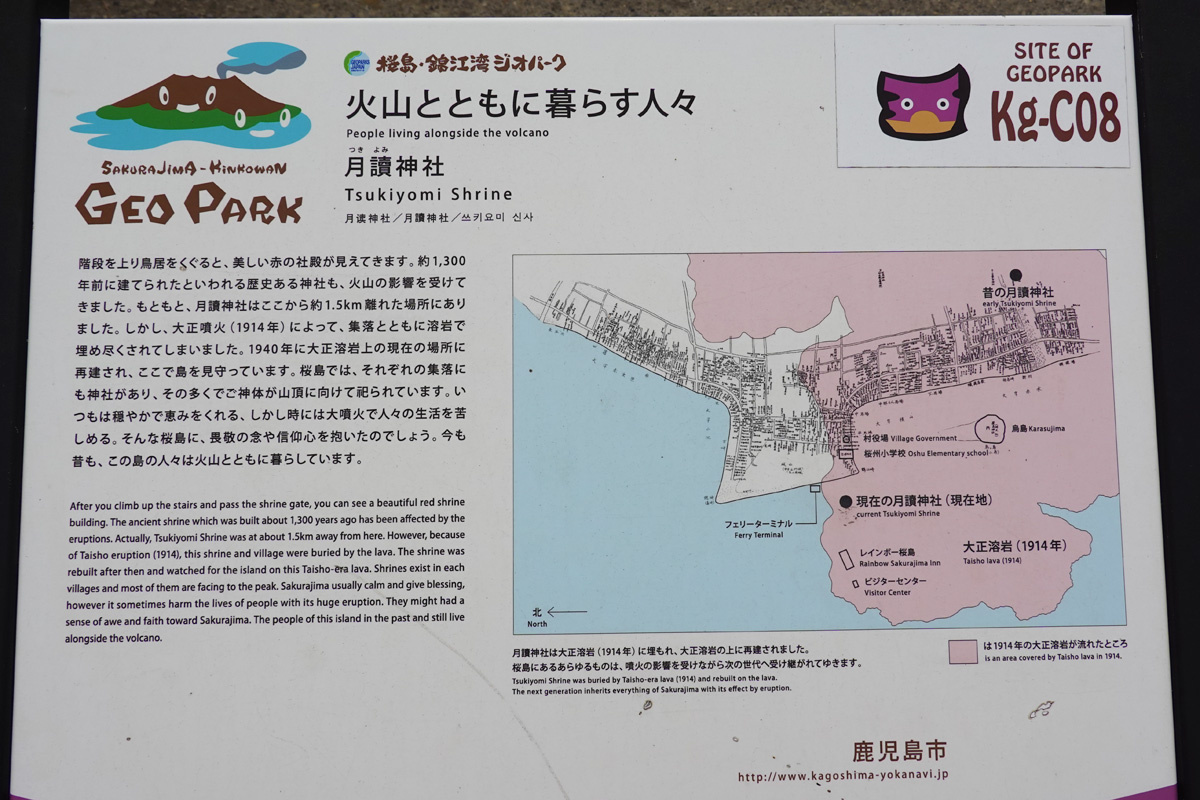 月讀神社は最初1,300年前に1.5Km離れたところに建てられたとのこと。しかし大正噴火で溶岩に埋まってしまいここに再建されたそうです。
