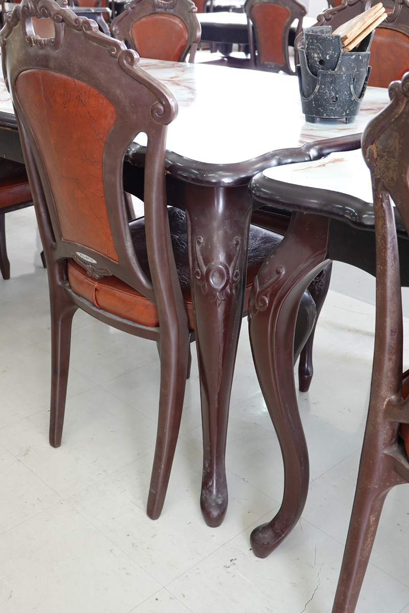 ここの椅子や机は実に凝った作りです。開業時にこれだけのものを揃えるにはかなりの費用がかかった事でしょう。