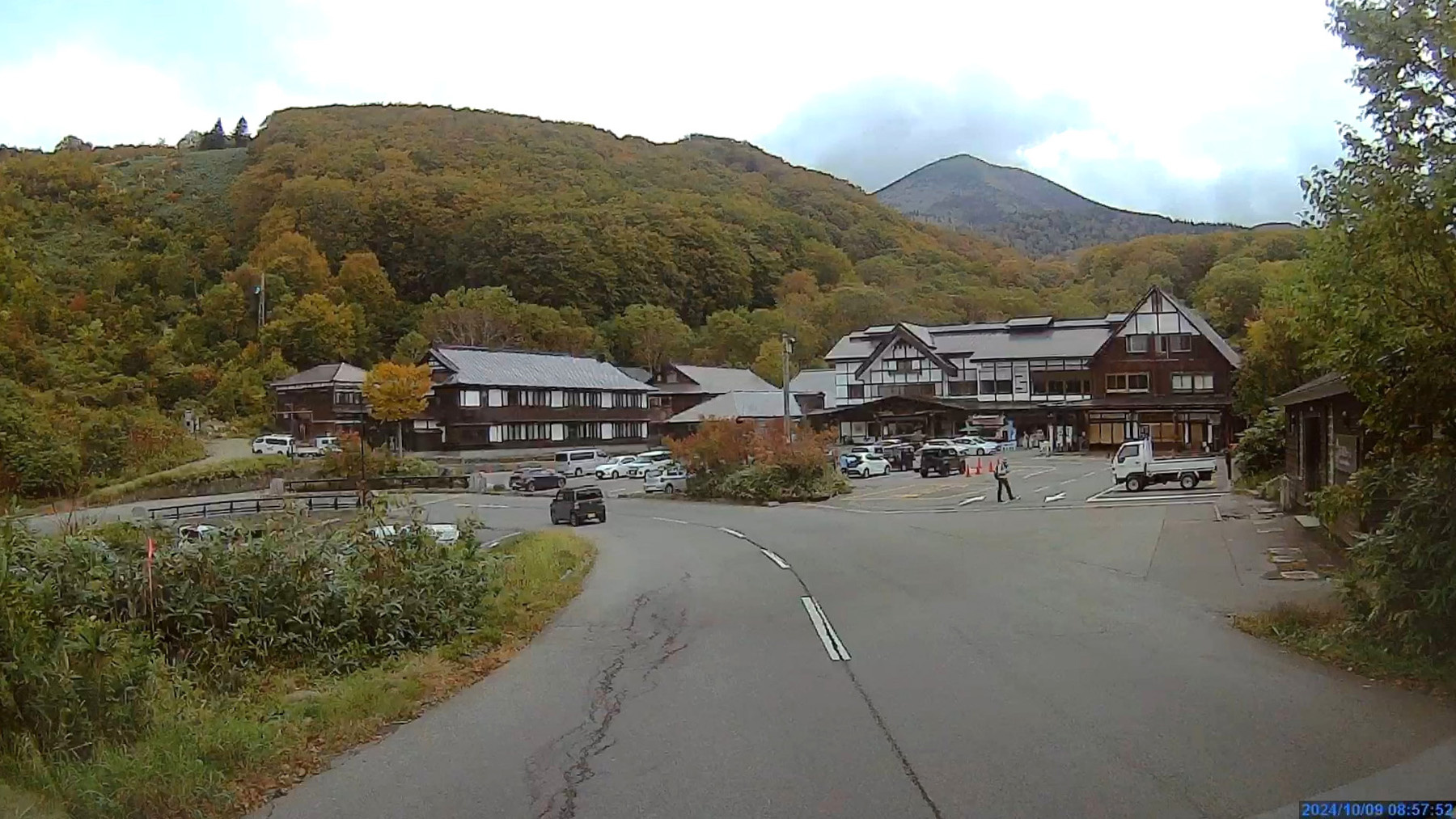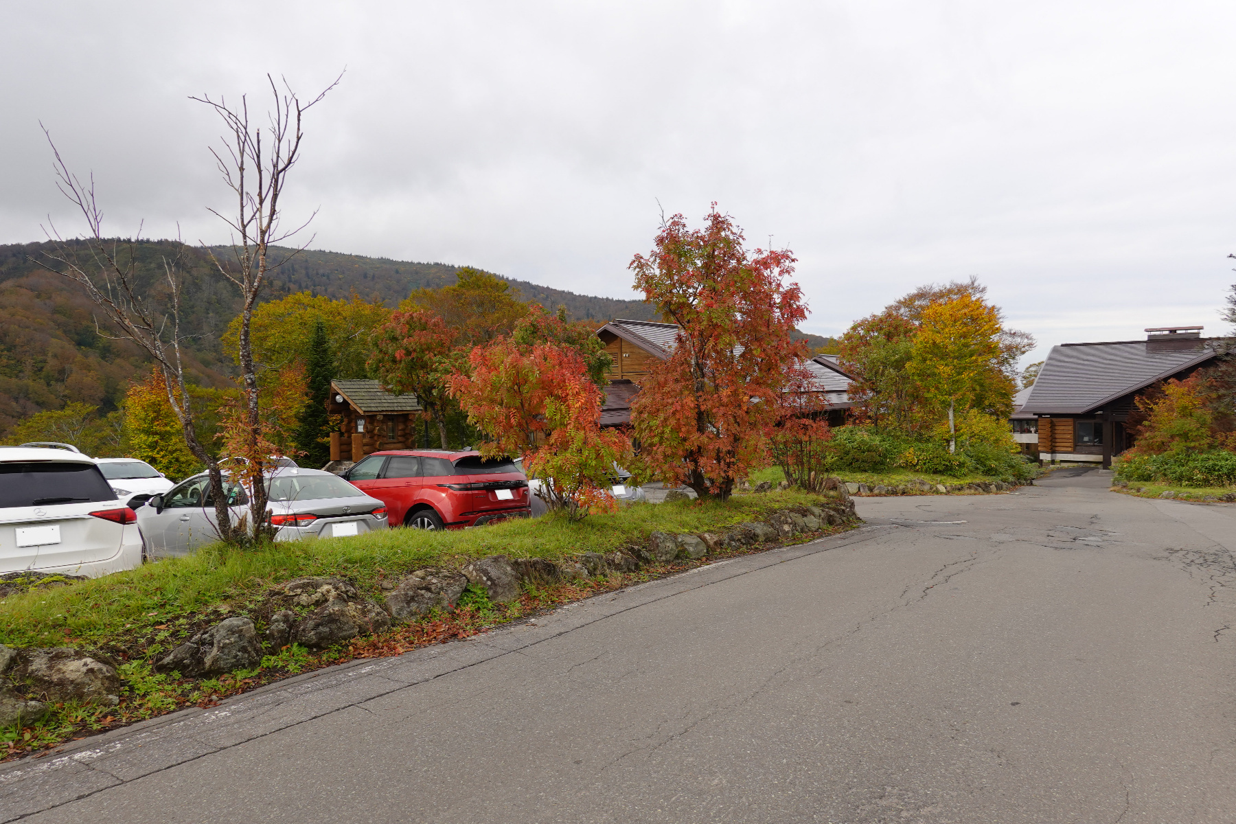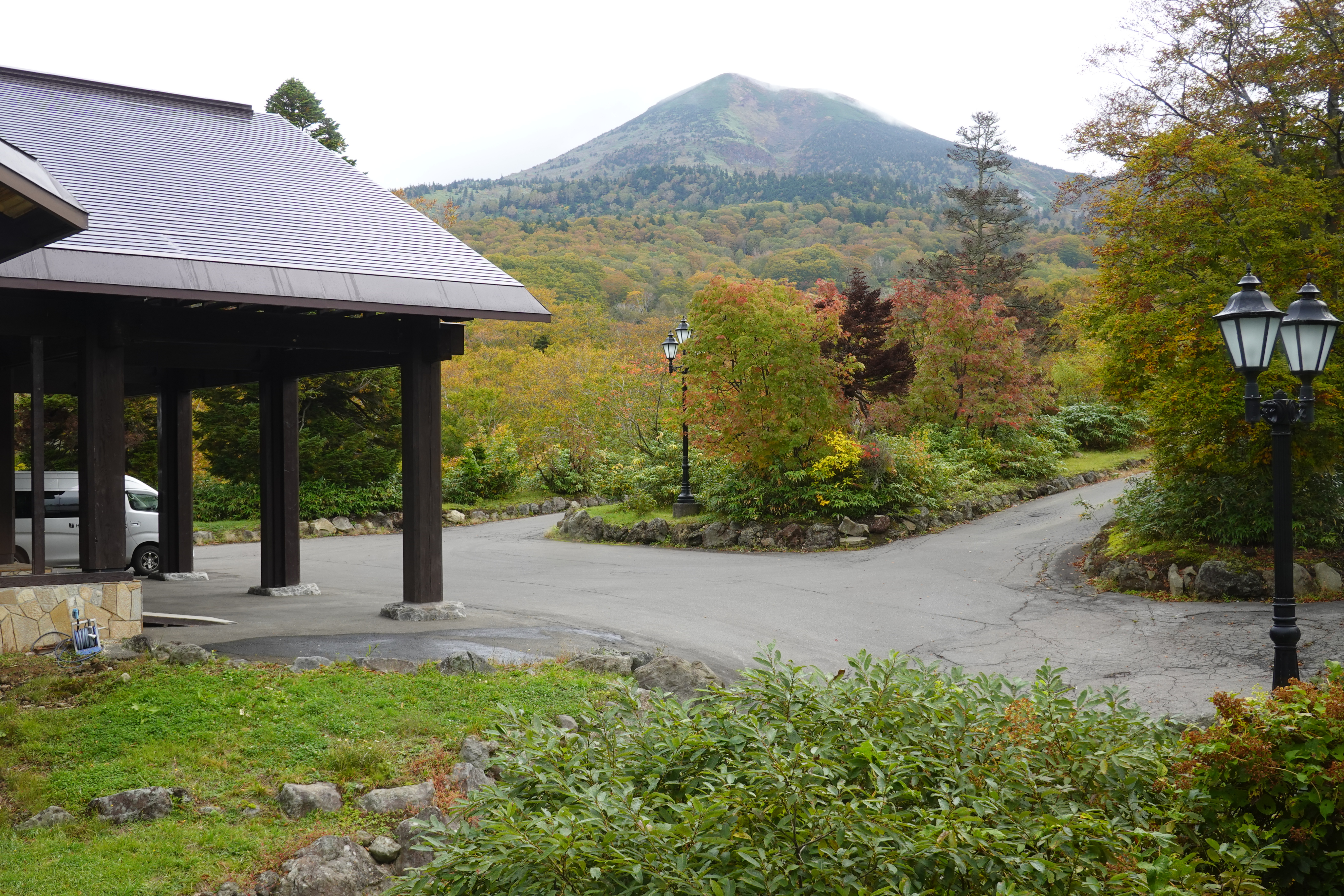 ![]() 昨夜は暗い中を走って来て見えませんでしたが、ホテル周辺は標高900mと高いだけあって結構紅葉してました。 |