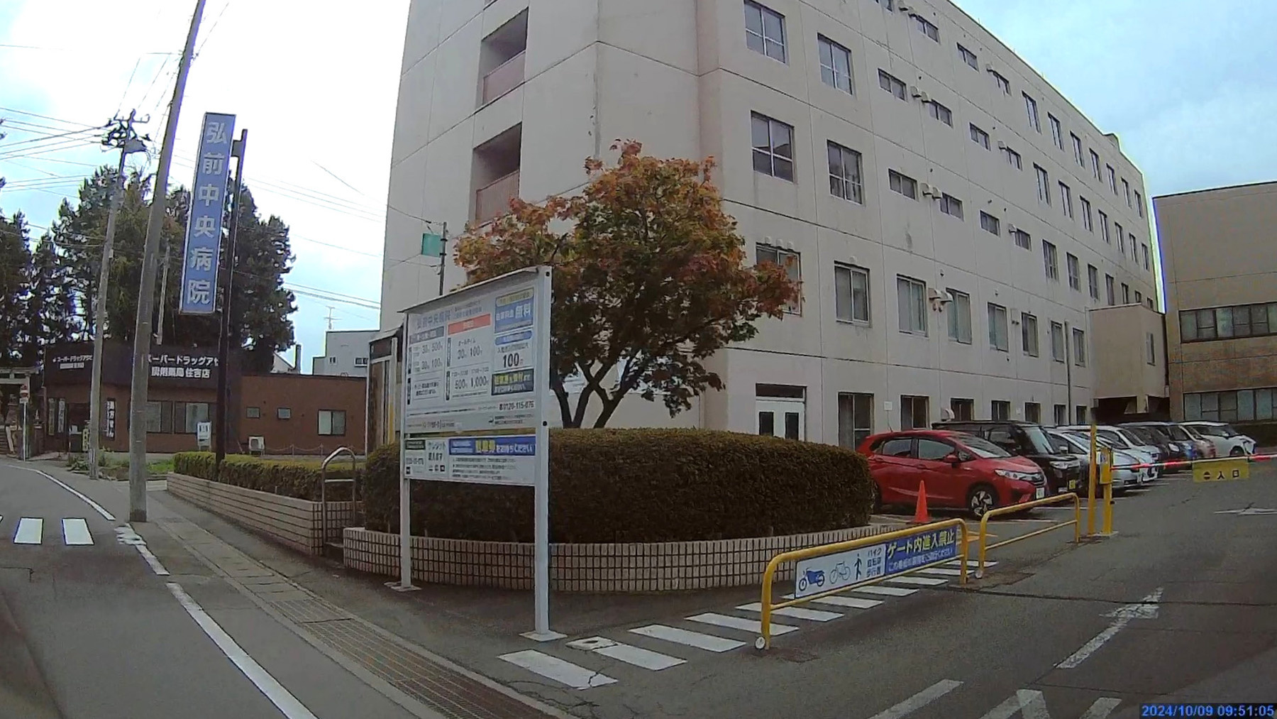 ![]() 山を下って弘前れんが倉庫美術館真ん前の弘前中央病院の駐車場に到着。09:50入庫11:04出庫で1,000円でした。 美術館の人からはここは提携駐車場ではなく高いので移動を奨められたが、遠くなると行き来に時間がかかるのでそのままにしました。提携駐車場に駐めると運転手と同乗者1名の観覧料が100円引きになるそうです。 |