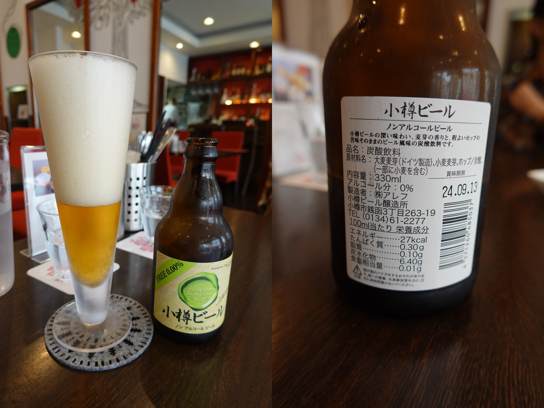 ![]() ここでは小樽ビールと言うノンアルコールビールを飲んだのですが、これも麦芽はドイツ製造でした。 |