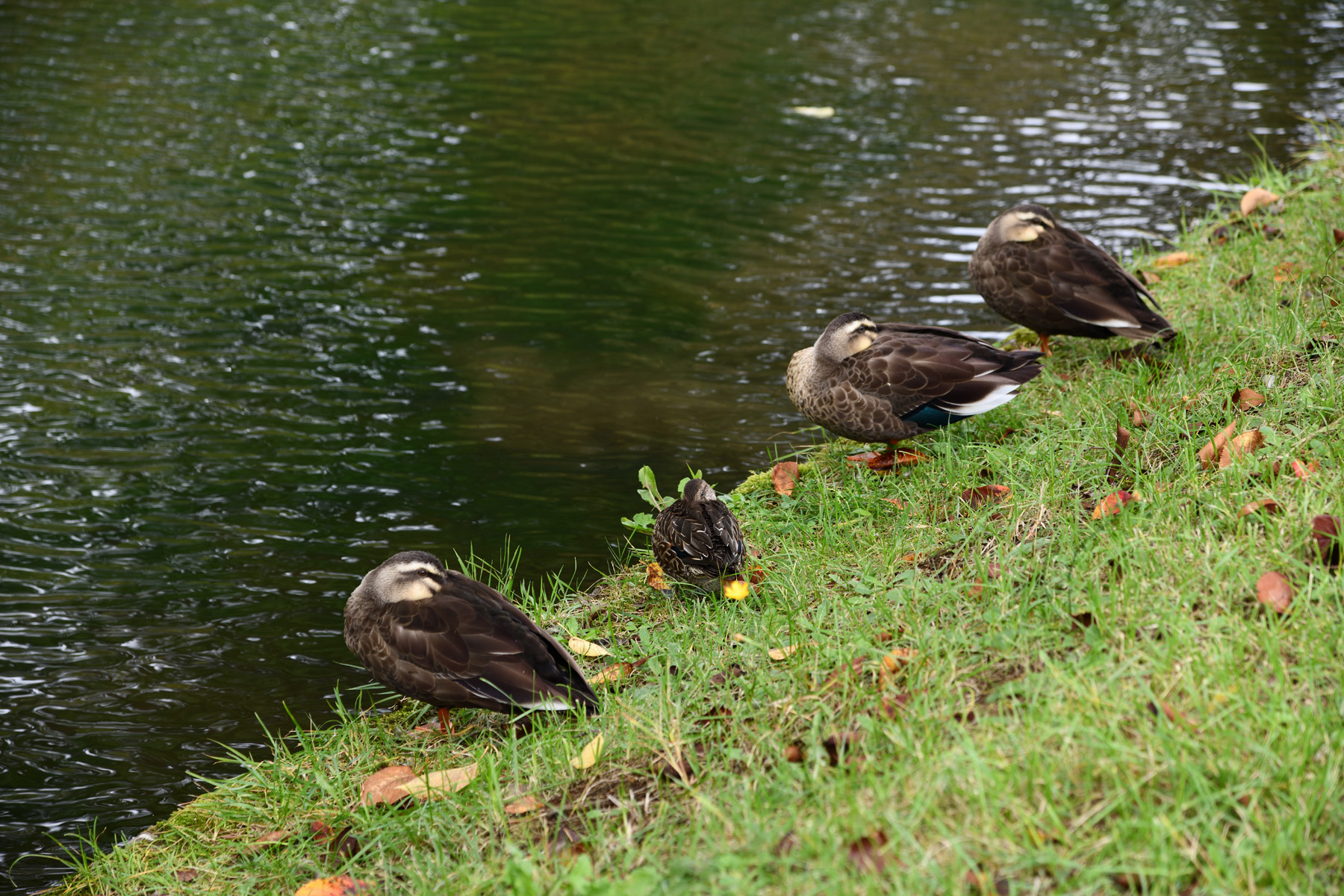 ![]() 途中では鴨がお昼寝中。 |