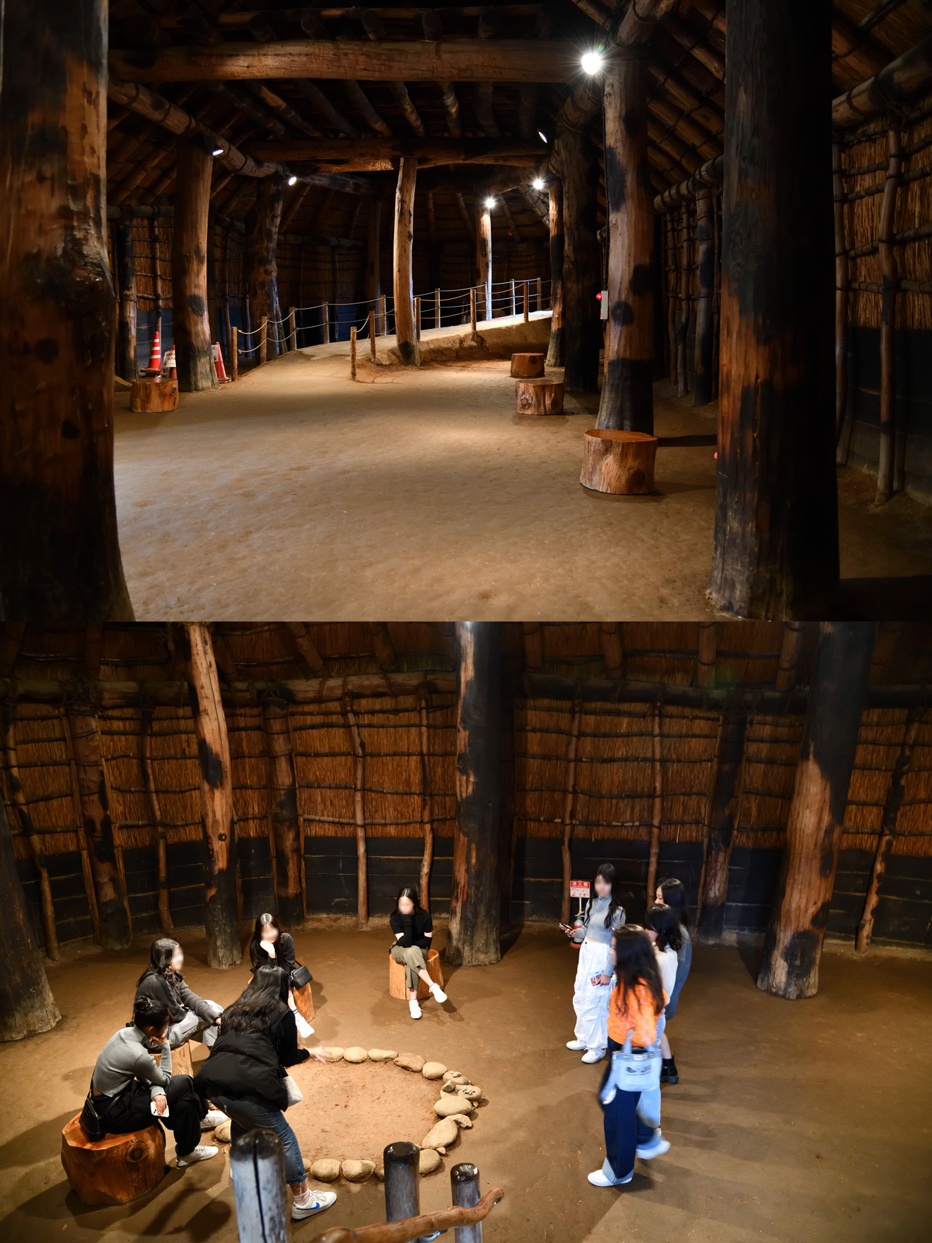 ![]() 大型竪穴住居の内部。下の写真の人物は当時を再現した人形ではなく観光客です^^。 |
