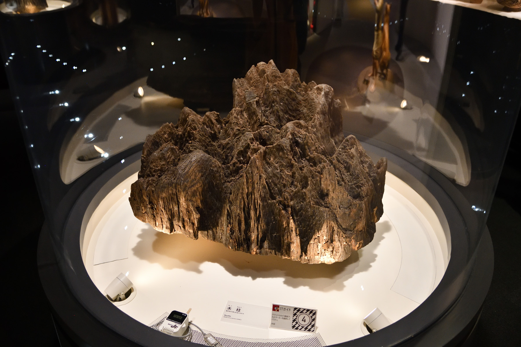 ![]() 大型掘立柱建物跡に埋まっていた木柱の残骸ですね。4600年前のものです。 |