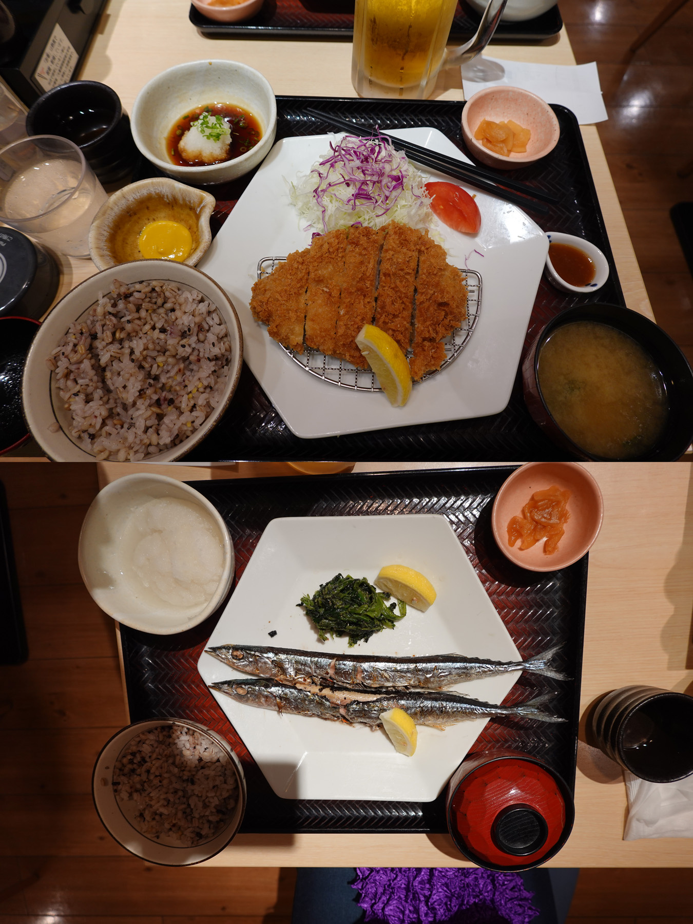 ![]() 夕食を食べに出掛けたが、居酒屋はあるものの食事ができるレストランはあまりない。結局、ホテルの1階に入っている大戸屋で、私はロースかつ定食、家内はさんまの炭火焼定食を食べました。 |
