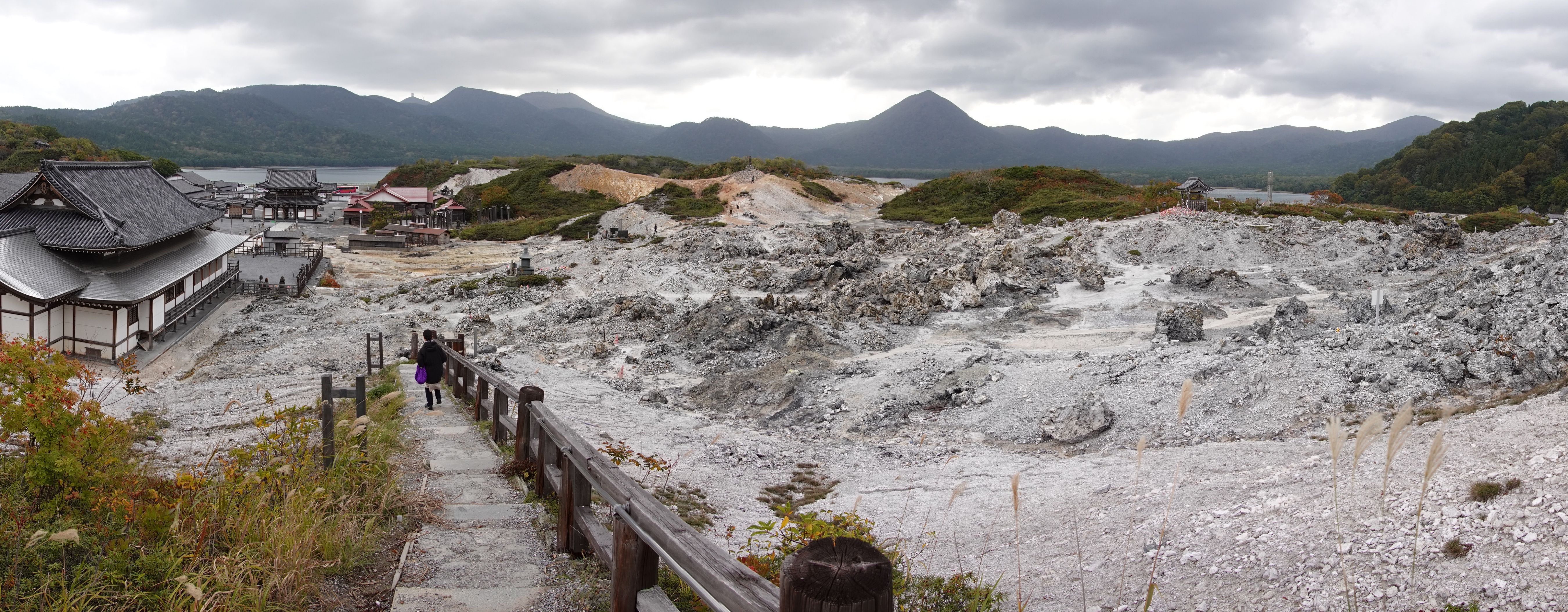 奥の院への階段から振り返った眺めです。賽の河原が広がってます。