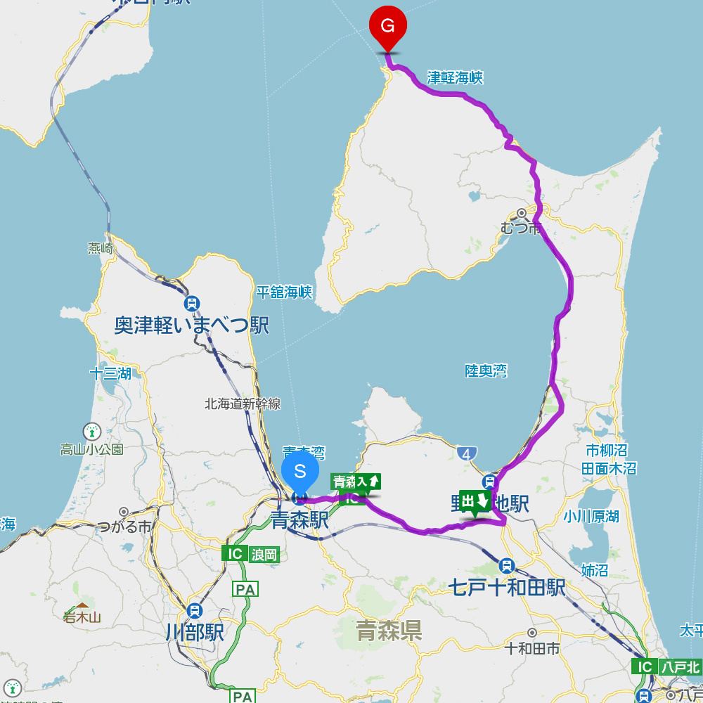 この日は1日かけて青森市から下北半島の先端(本州最北端)まで行ってきます。案外遠くて片道150Kmはあります。