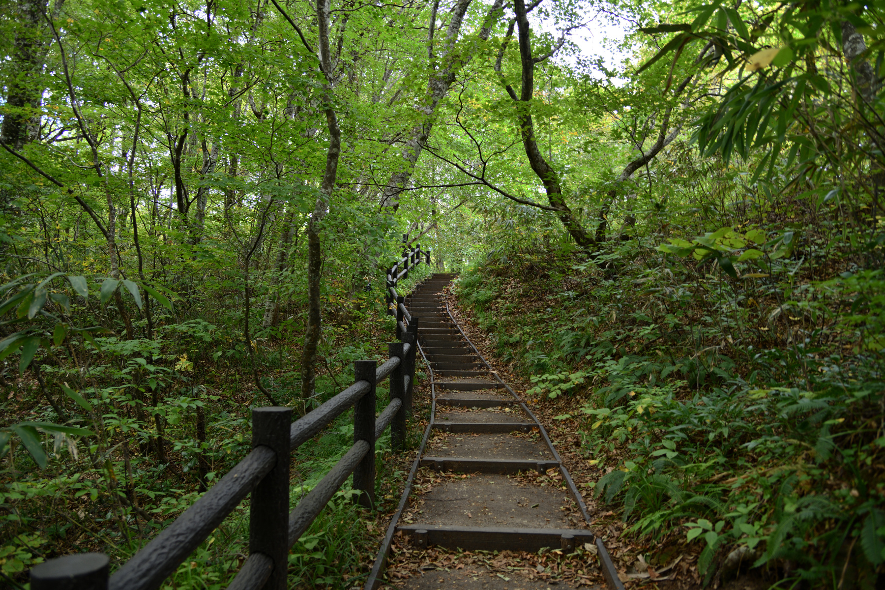 ![]() 階段を登ってブナ自然林へ向かいます。 [高解像度写真] |
