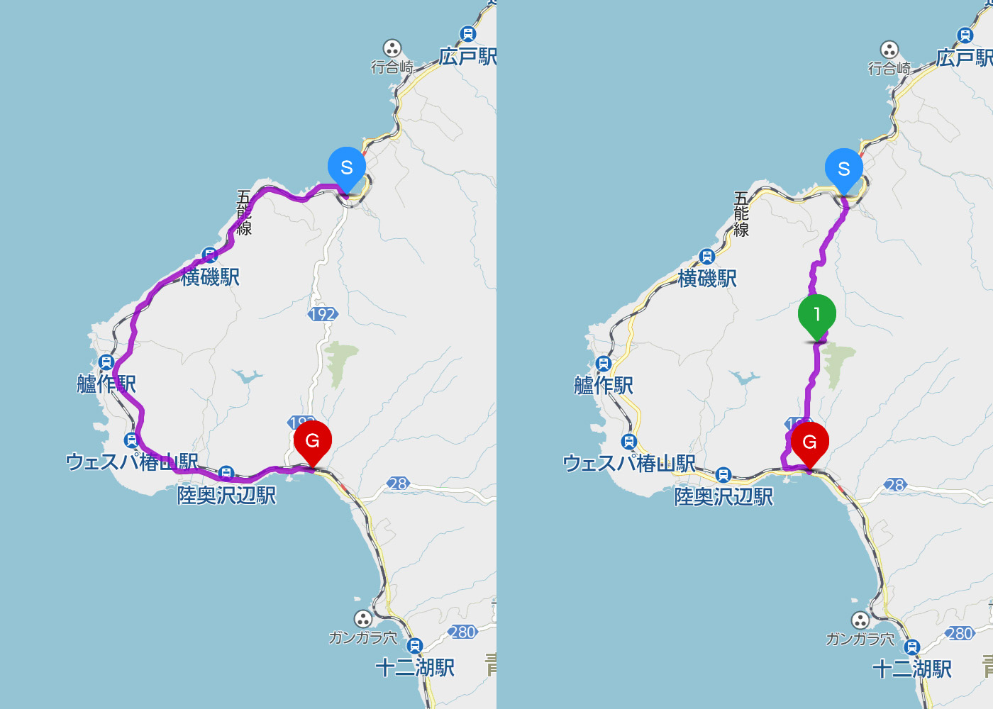 ![]() 通常は海岸沿いの走りやすい道を案内するのだと思いますが、この時は何故か山越えの狭い道。 後で確認したら海岸沿いだと13.4Kmで16分、山越えだと8.2Kmで17分でした。道のりは山越えが5Kmも短く、混雑などの事情で所要時間も山越えが若干短くなったのでしょうか?。 前からクルマが来ないかとヒヤヒヤでしたが、最後の方の少し広くなったところで1台すれ違っただけでした。 |