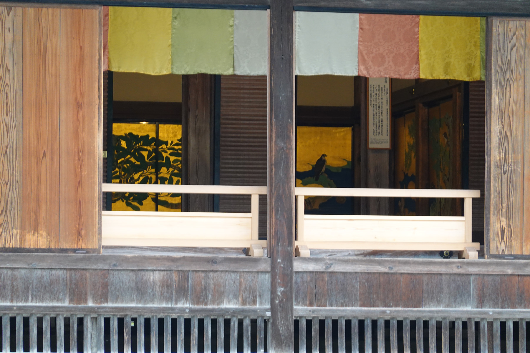 本堂の外から望遠で撮ると撮影禁止の襖絵がちらっと写ります。