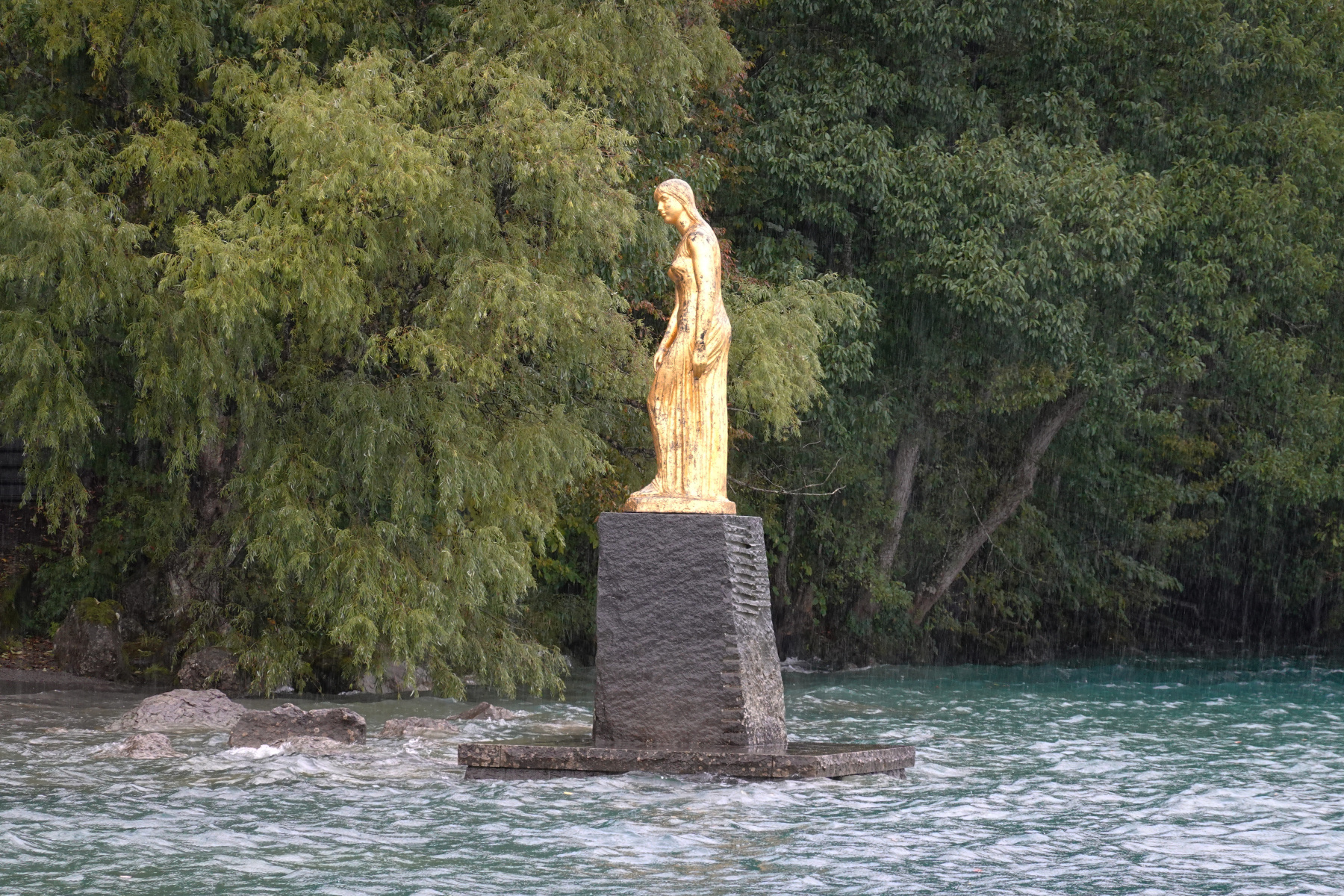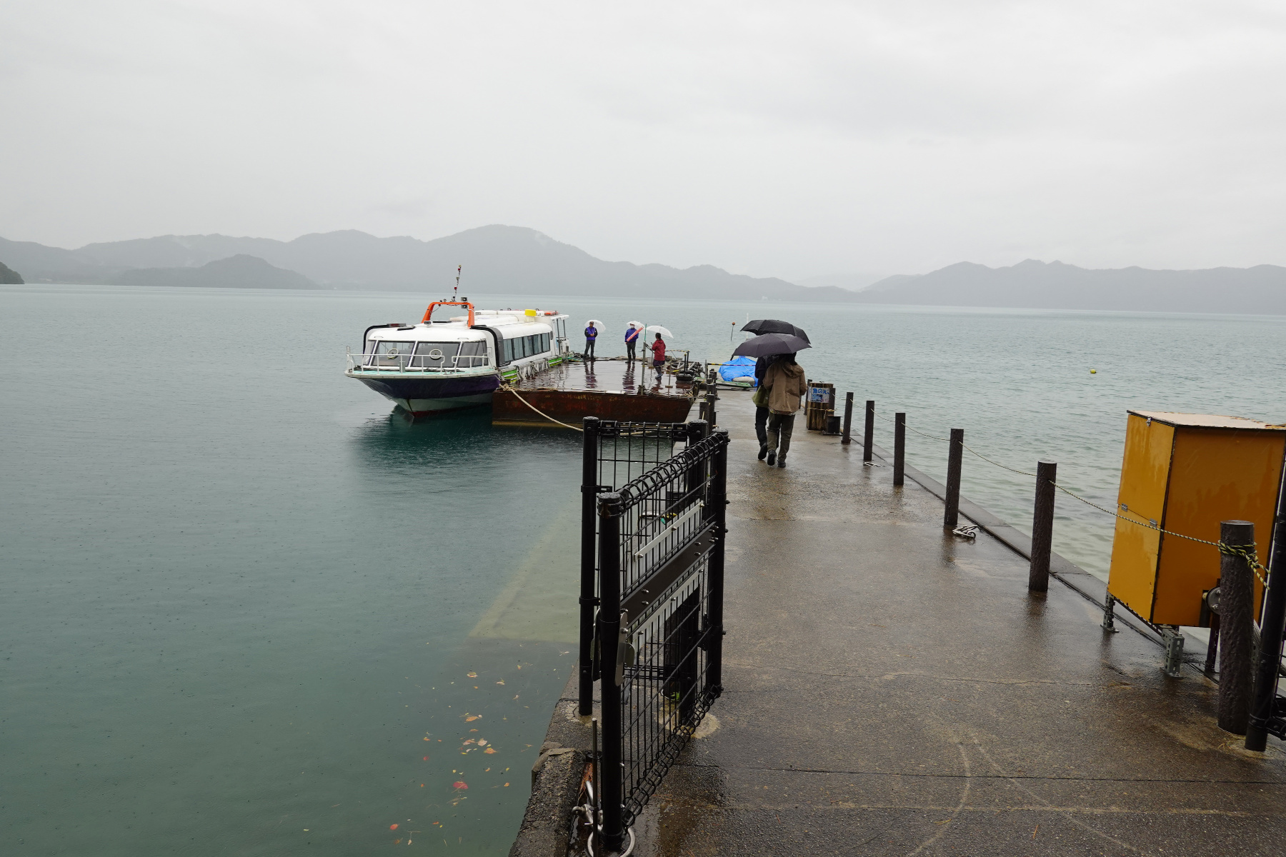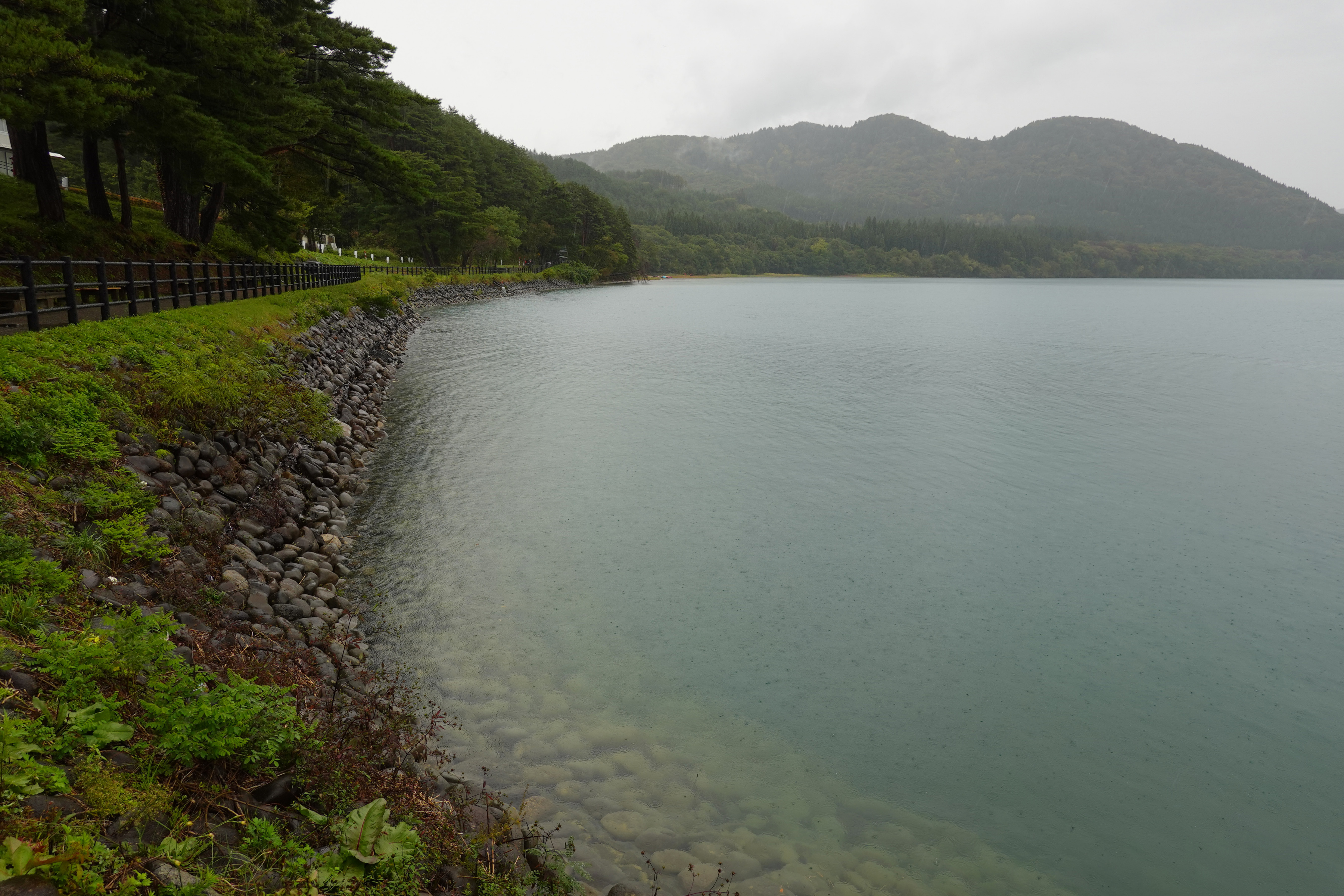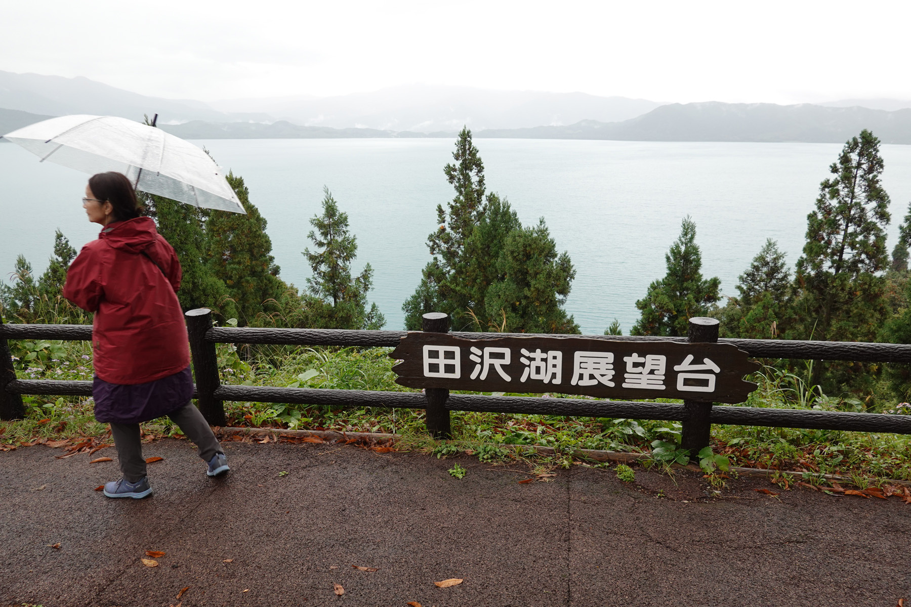 12:30に田沢湖の駐車場に着きました。生憎結構な雨です。