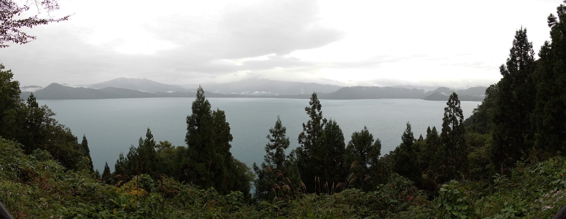 ホテルロビーから見えた田沢湖。雲がたなびいてますが良い景色です。