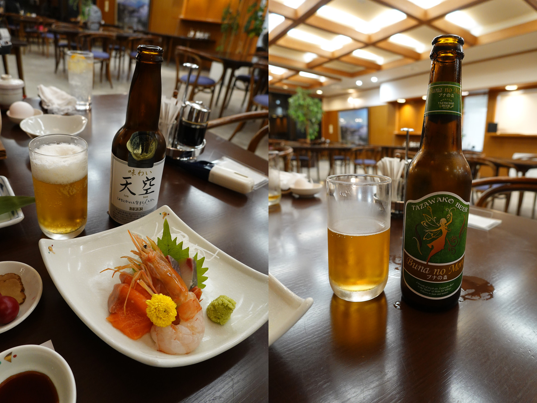 ビールは最初は味わい天空、2杯目は田沢湖ビールの「ブナの森」を飲みました。