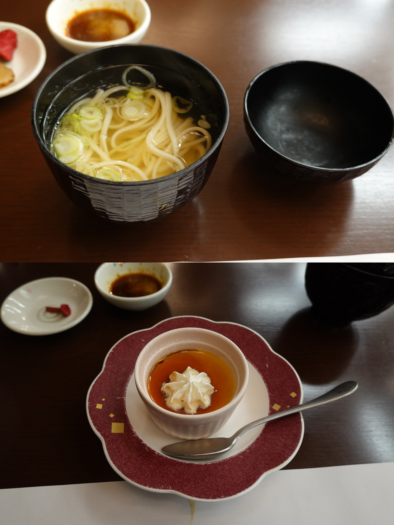 ここは最後はご飯ではなく稲庭うどんでした。デザートはプリン。