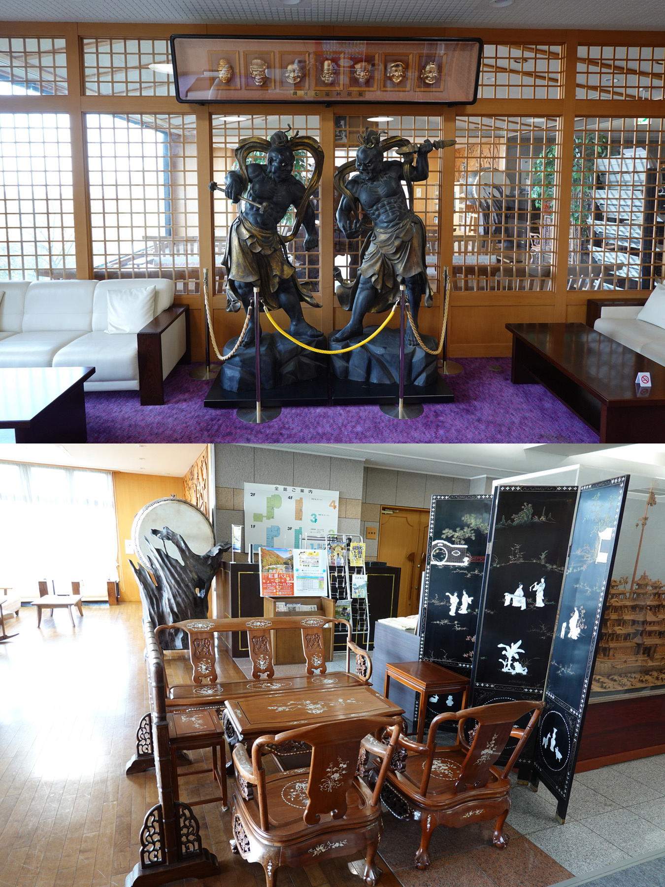 ![]() ここのホテルの創業者の収集品なのか、ロビーには美術品や凝った調度品が沢山あります。 |
