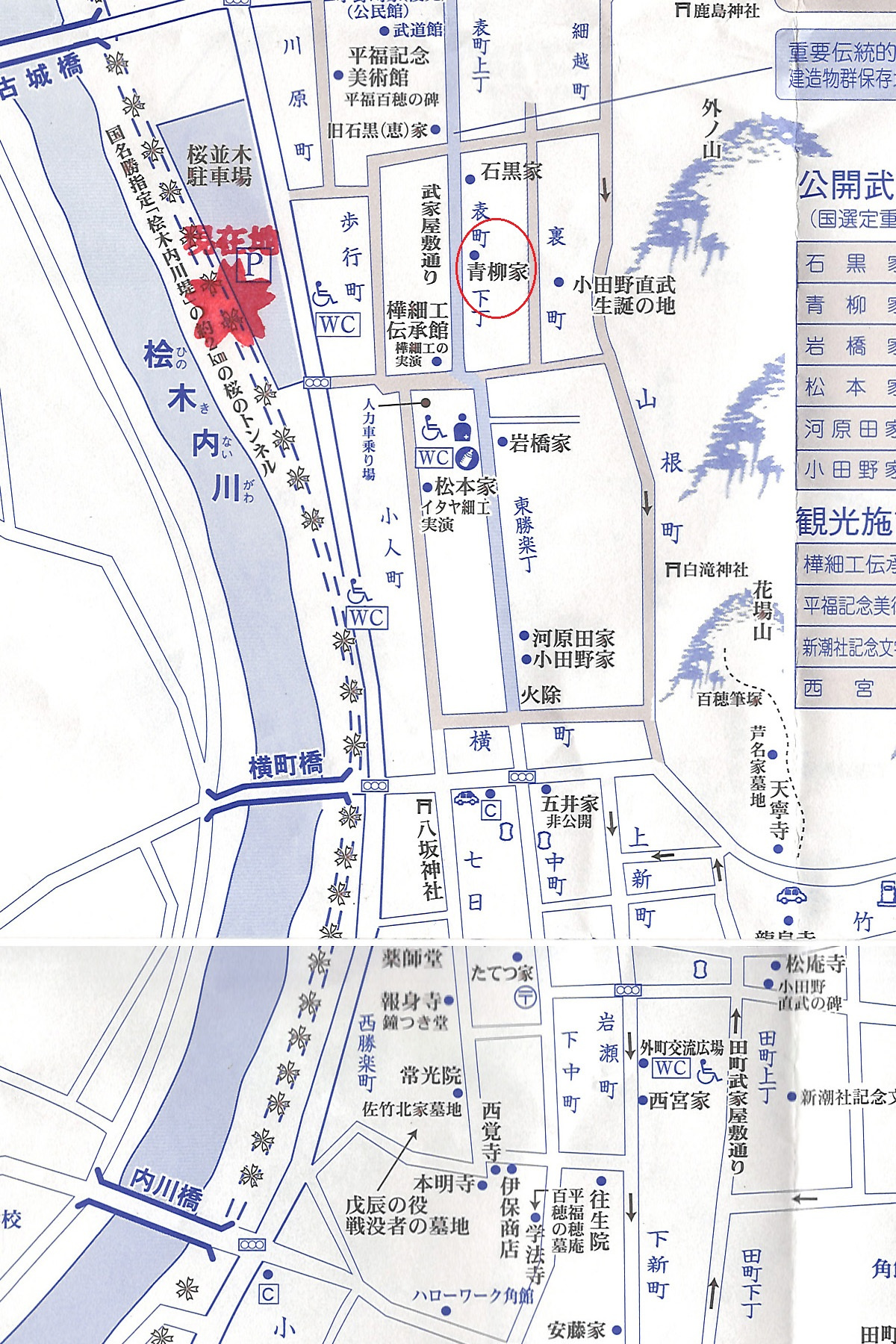 ![]() 青柳家内部の案内図。広くて色々な建物があります。 [高解像度写真] |