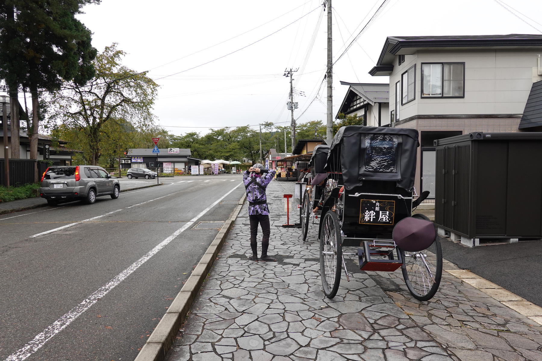 ![]() 青柳家へ向かう途中に人力車がいて乗車を勧められたが、付近をぐるっと回るだけで武家屋敷に入る時間が無くなるので遠慮しました。 |