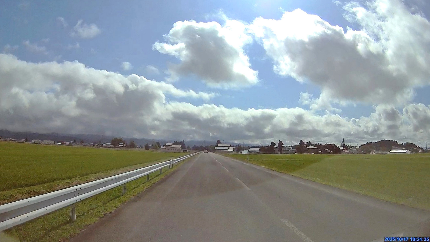![]() 10:03に桜並木駐車場を出発し山形へ向かいました。1時間ほどは秋田県の稲刈りを終えてしばらく経った田んぼの中の一般道を走って行きます。 |