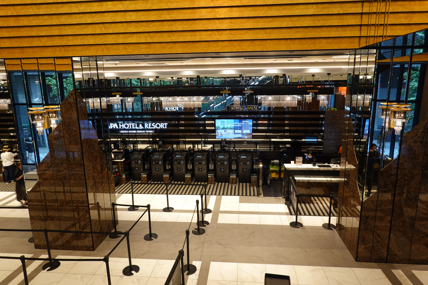 これは出発時に撮った写真ですが、ロビーには自動チェックイン機が並んでいます。アパアプリを使用すると1秒でチェックインできるらしいですが、そうでなくても名前を入力すると朝食券やルームキーカードが発行されます。チェックアウトはルームキーを別の回収箱に投入するだけです。
