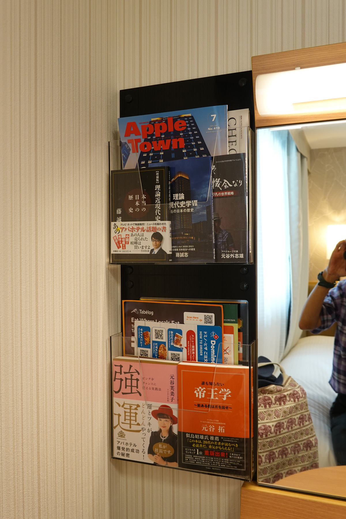こちらは中国人除けの書籍類。こういうのがあるので中国のツアー会社がアパホテル利用のツアーを組まないそうです。