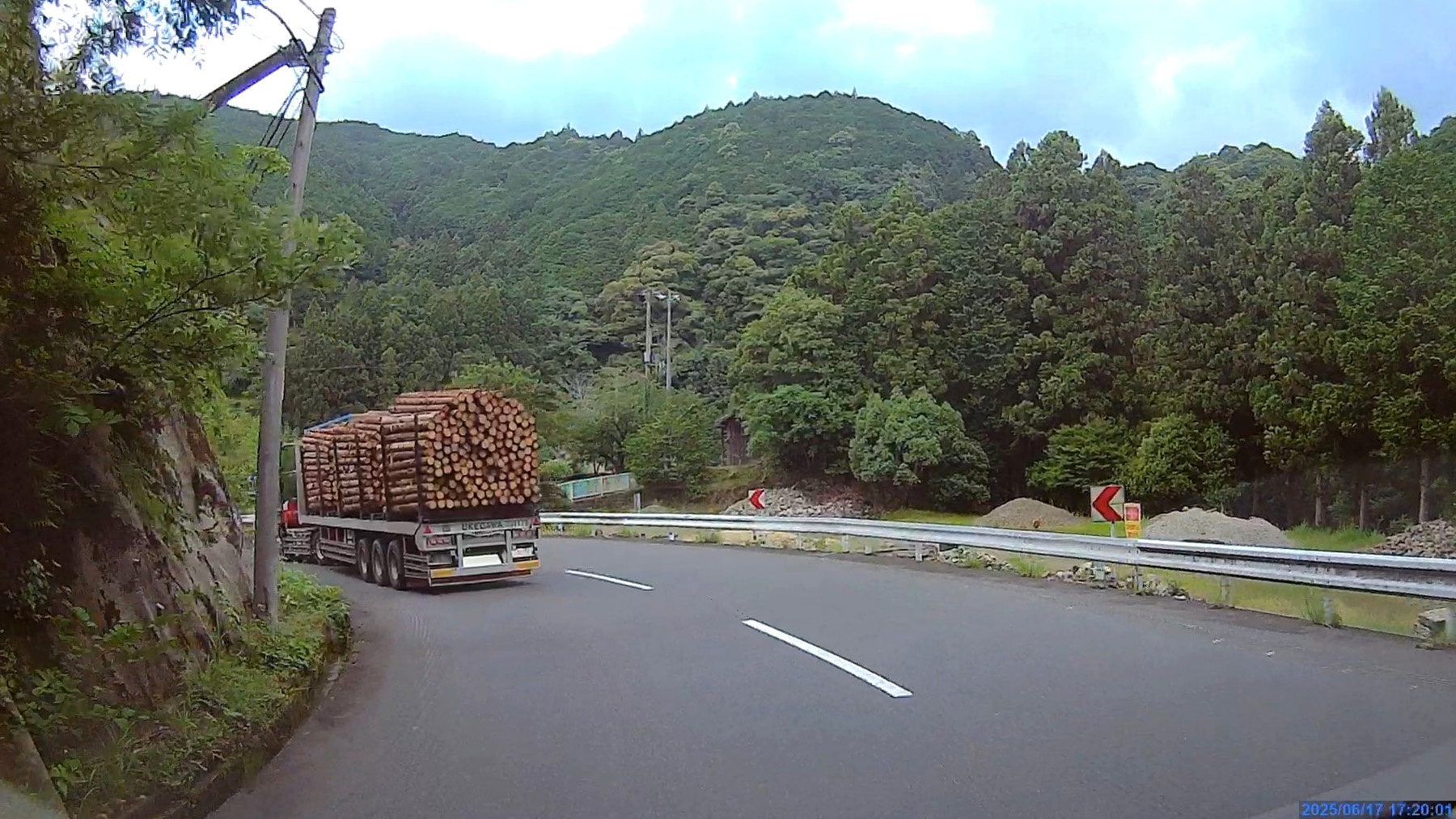 ![]() 山の中を川沿いに走って行きます。 |