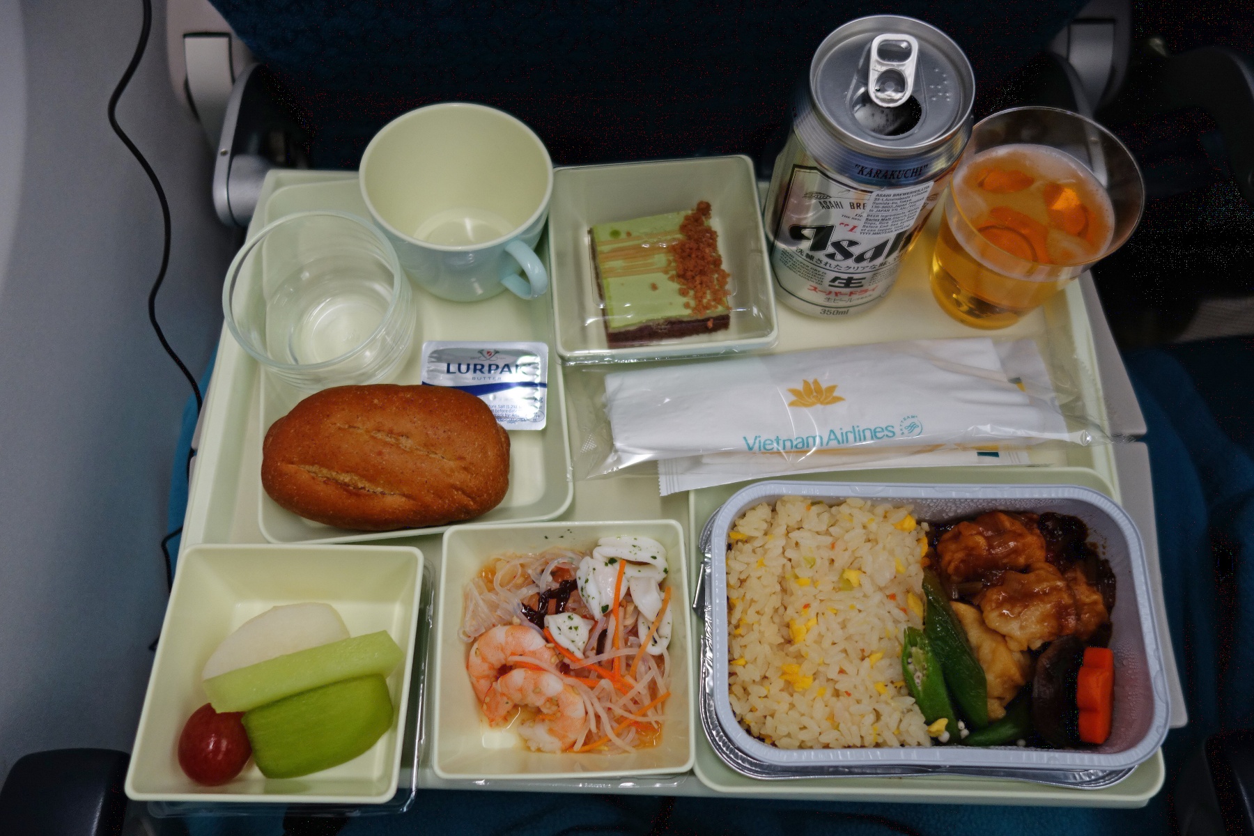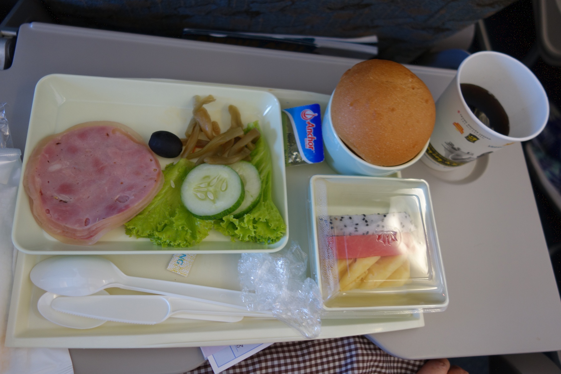 12時頃に飲み物に続いて昼食が出てきた。洋食と和食があって、こちらは洋食。
