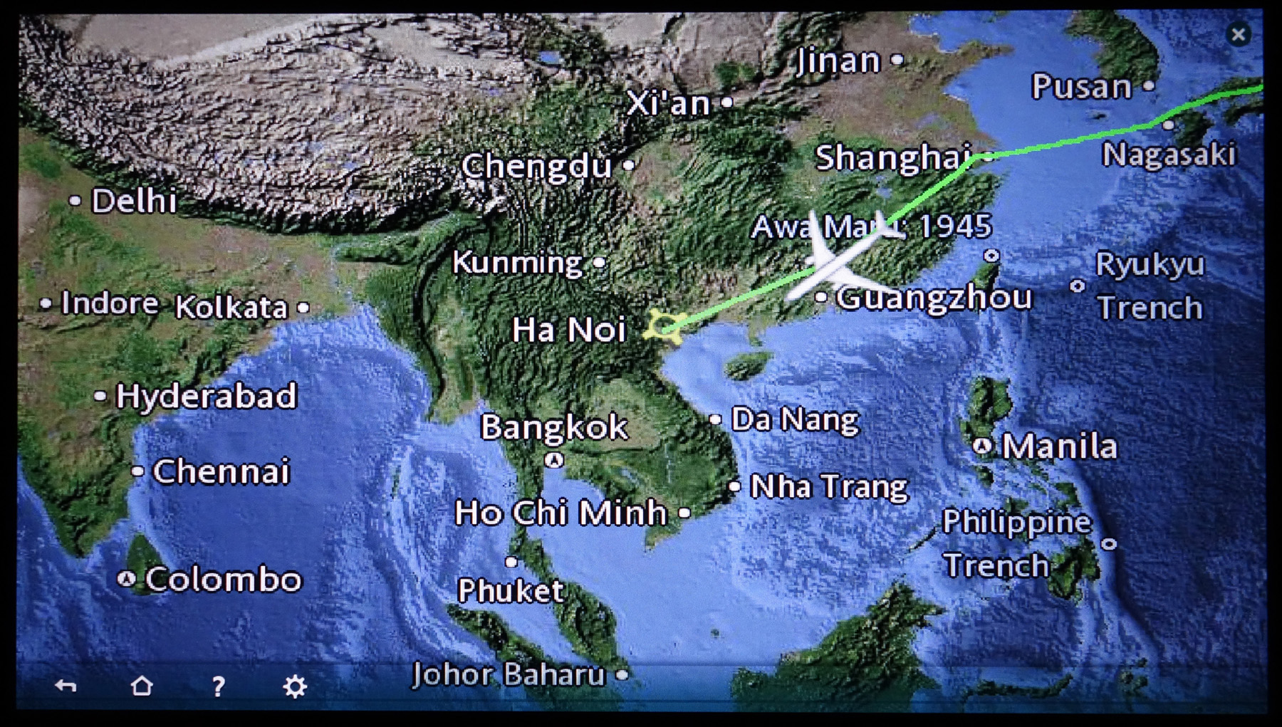 ここでベトナム時間に切り替え。時差が2時間あるので既に4時間飛んでいる。中国上空を飛行中。