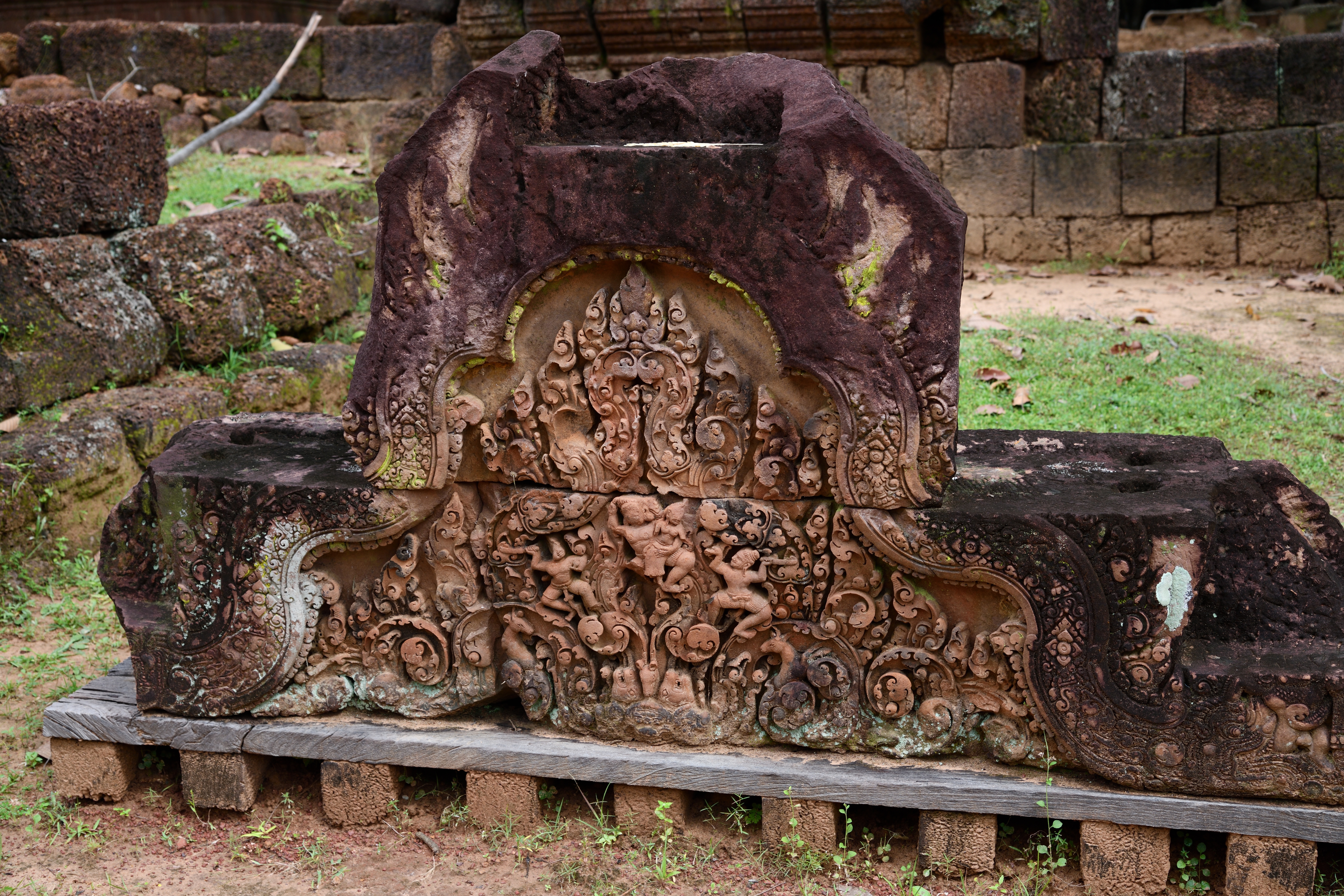 正面の飾りの側面には人面ヘビのようなレリーフもあった。蛇神ナーガの一種だろうか?。