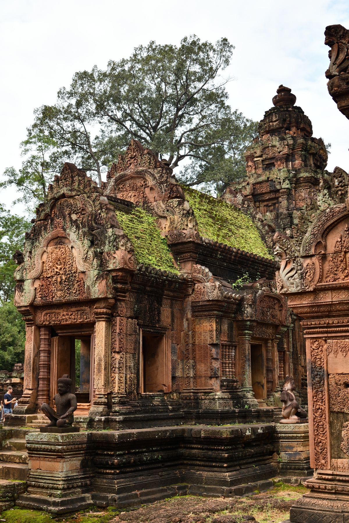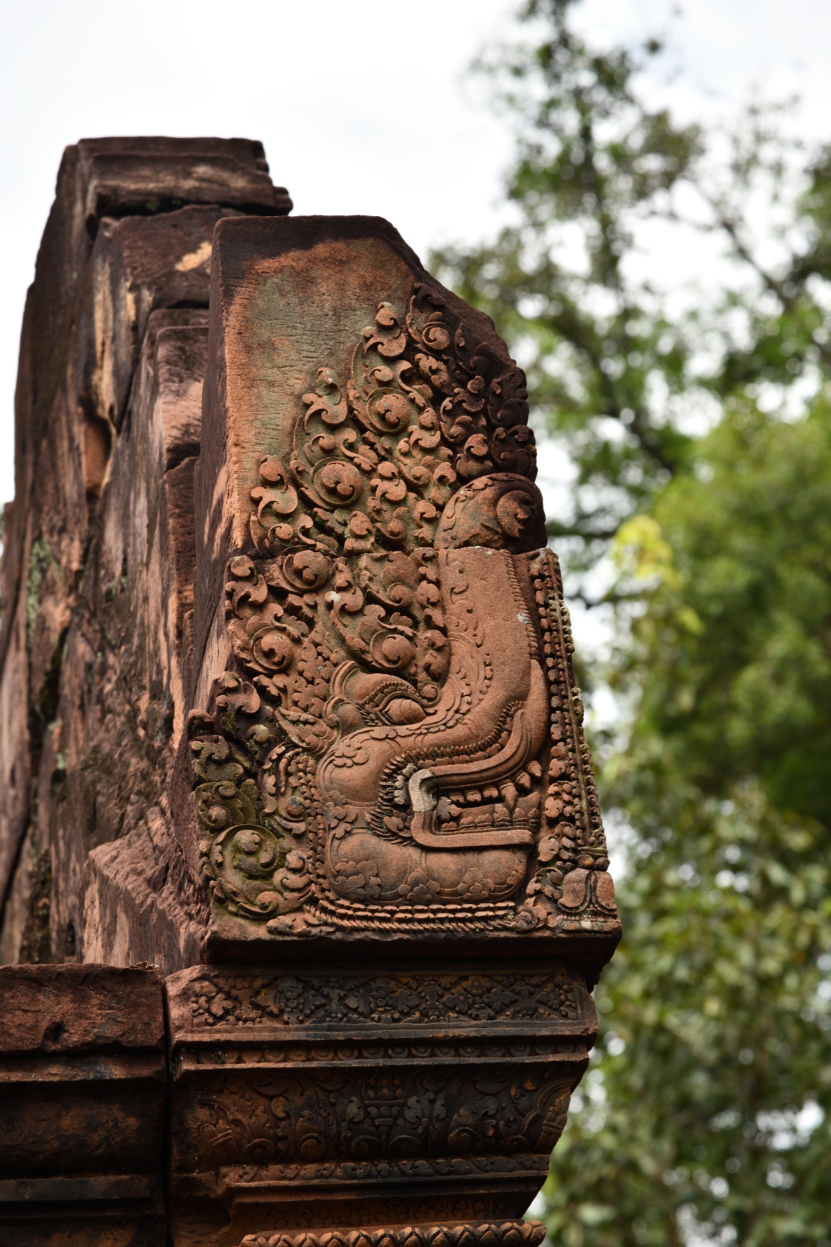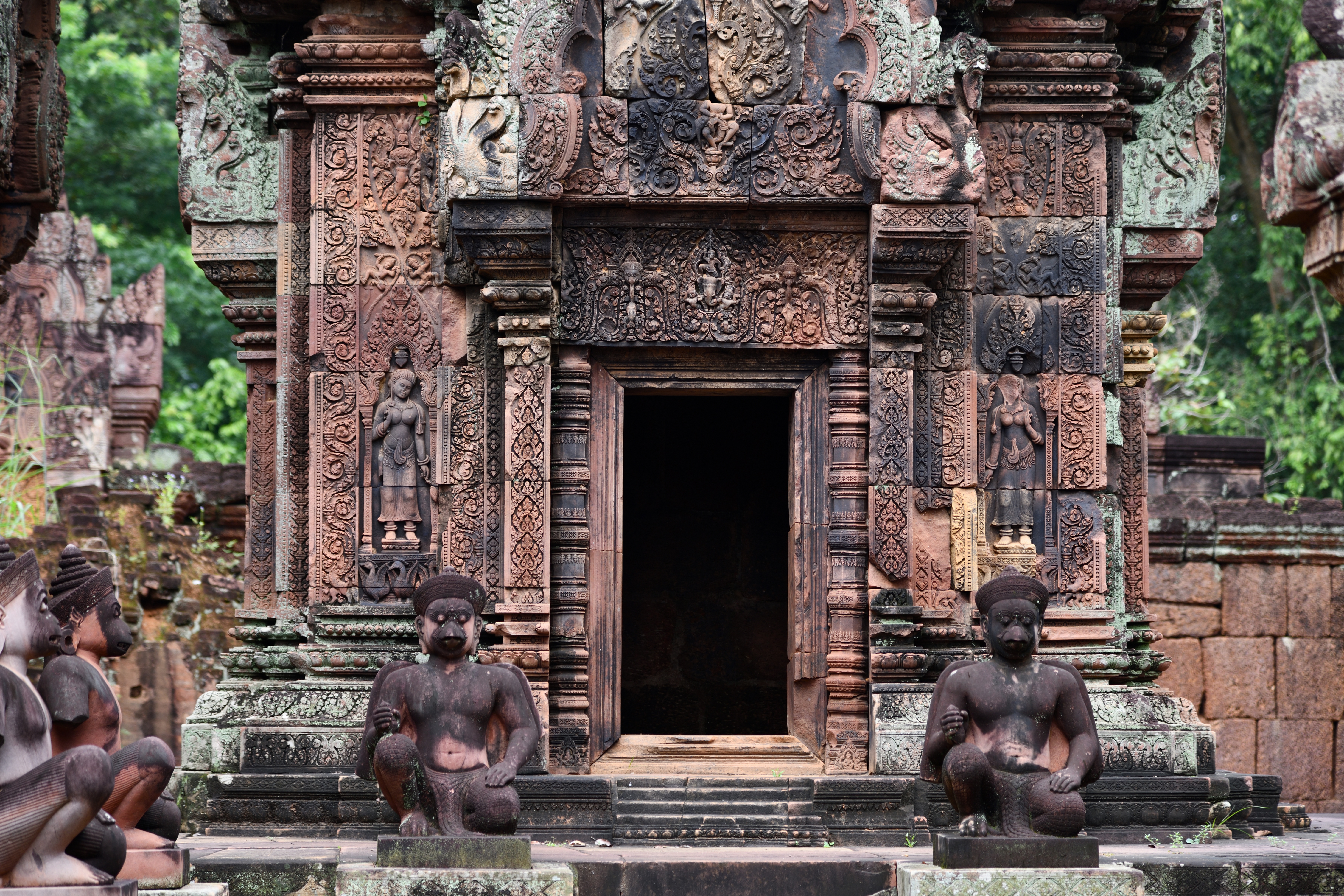 祠堂の周りに彫られている美しいデバター像。そして祠堂を守る半神半獣。東洋のモナリザと呼ばれているのは、これとは別の像らしいが写真を撮り損なった。