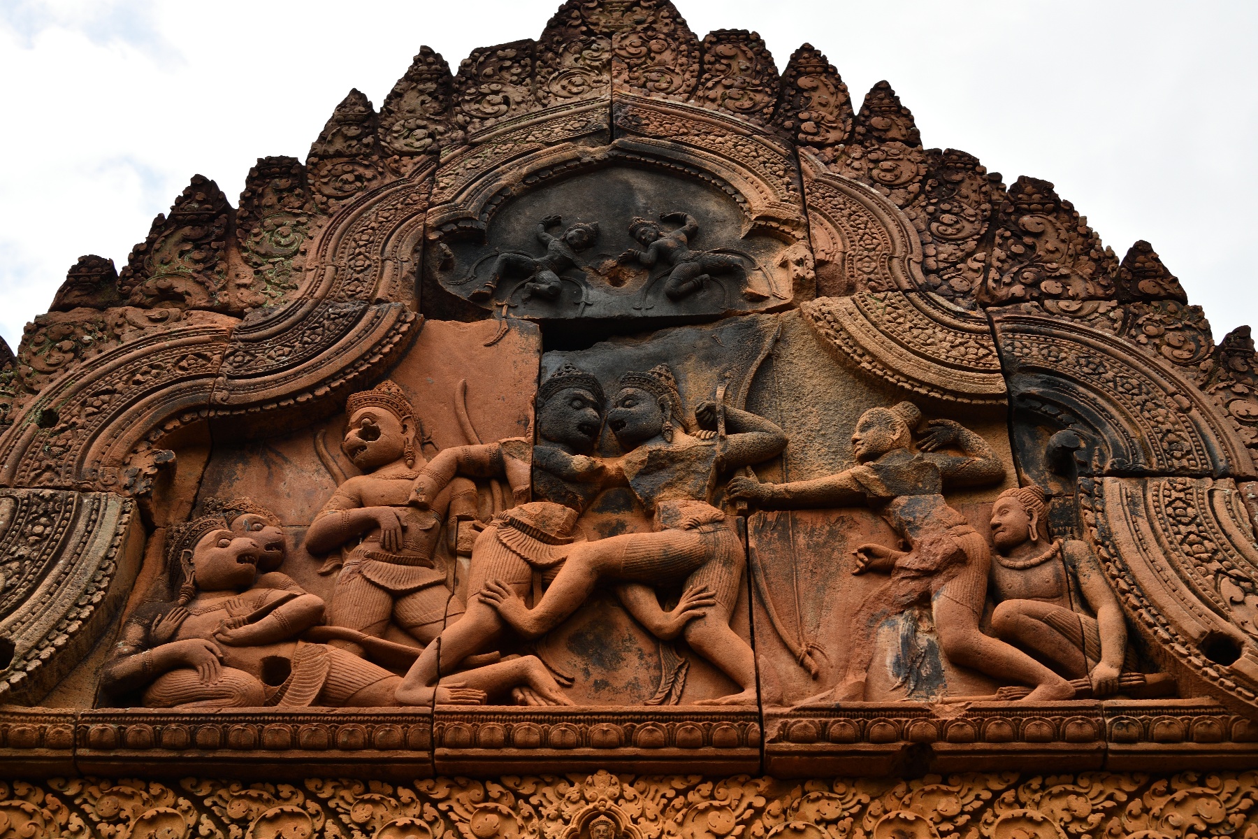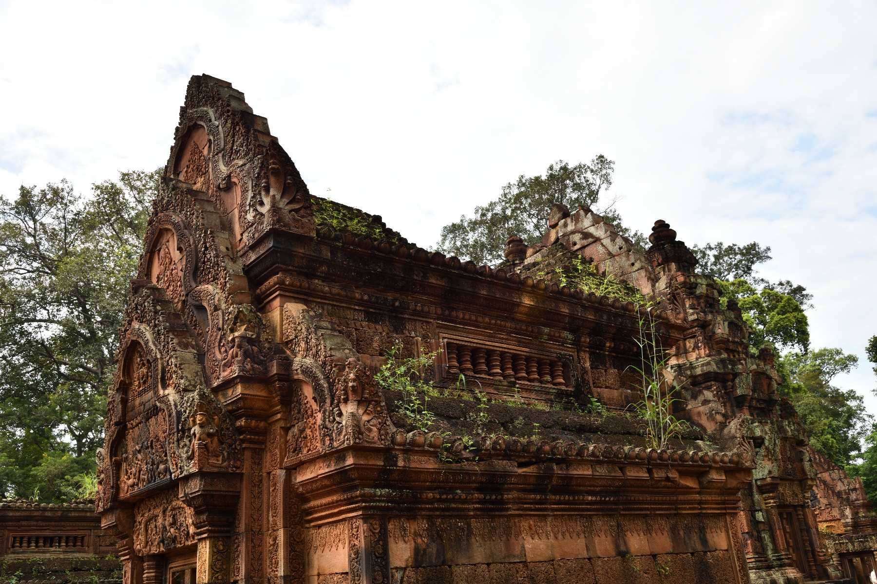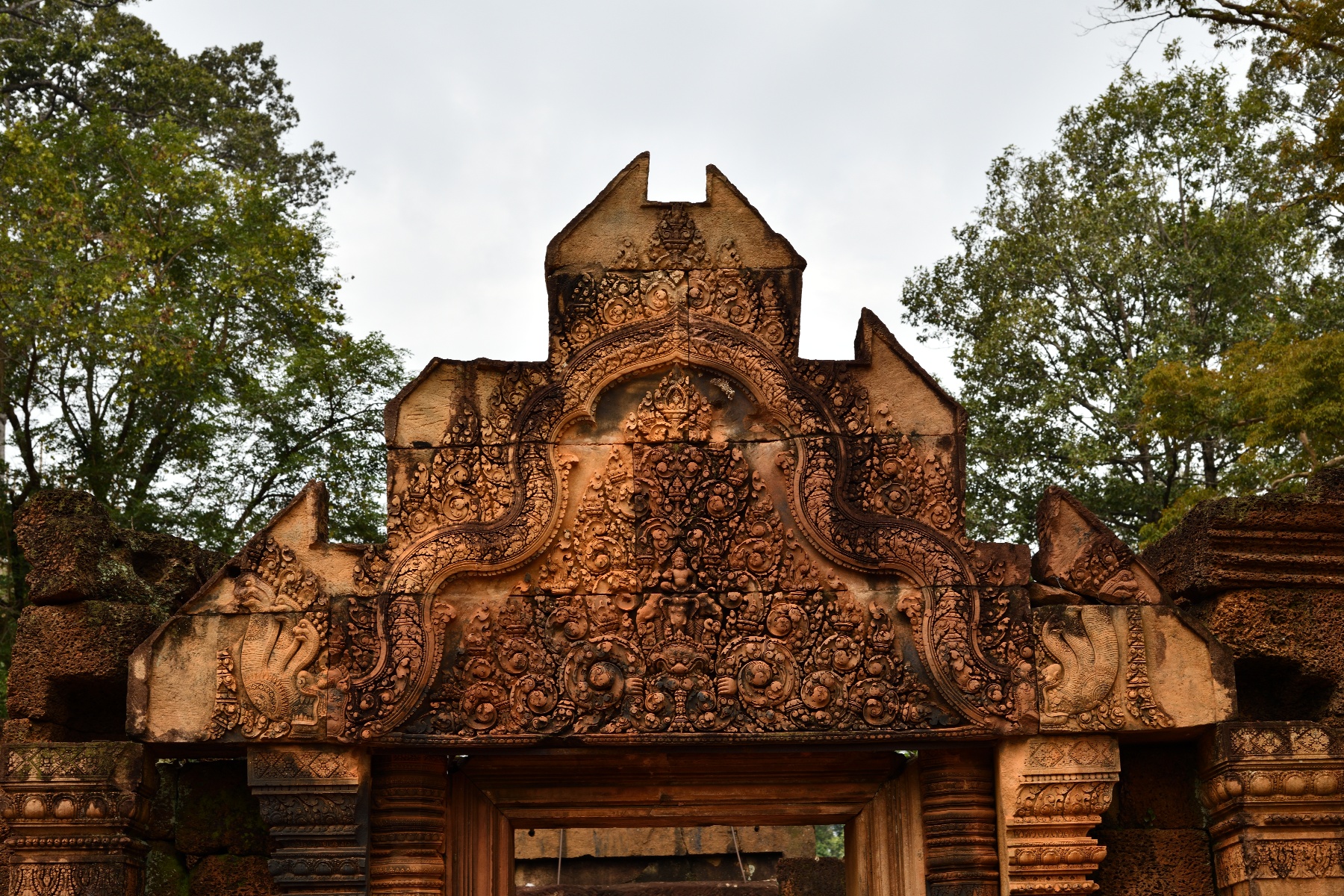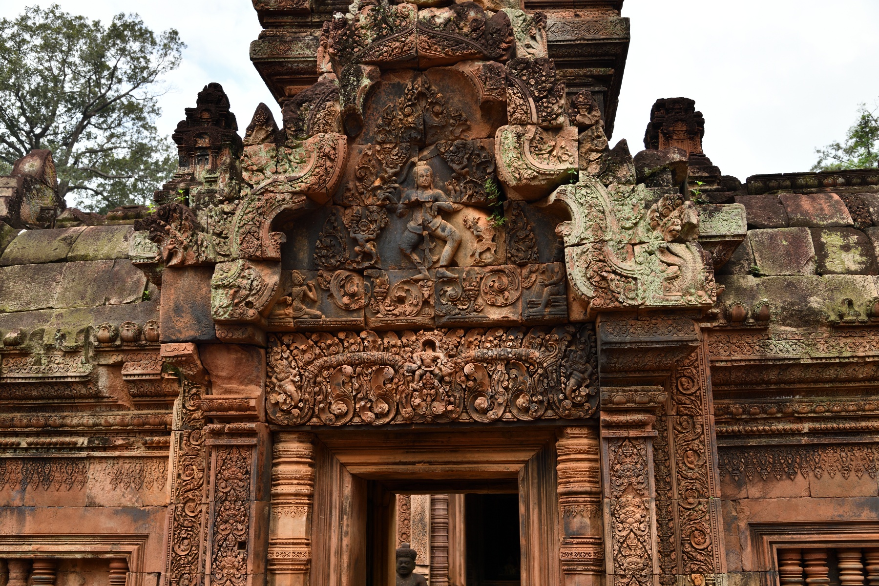 祠堂の周りに彫られている美しいデバター像。そして祠堂を守る半神半獣。東洋のモナリザと呼ばれているのは、これとは別の像らしいが写真を撮り損なった。