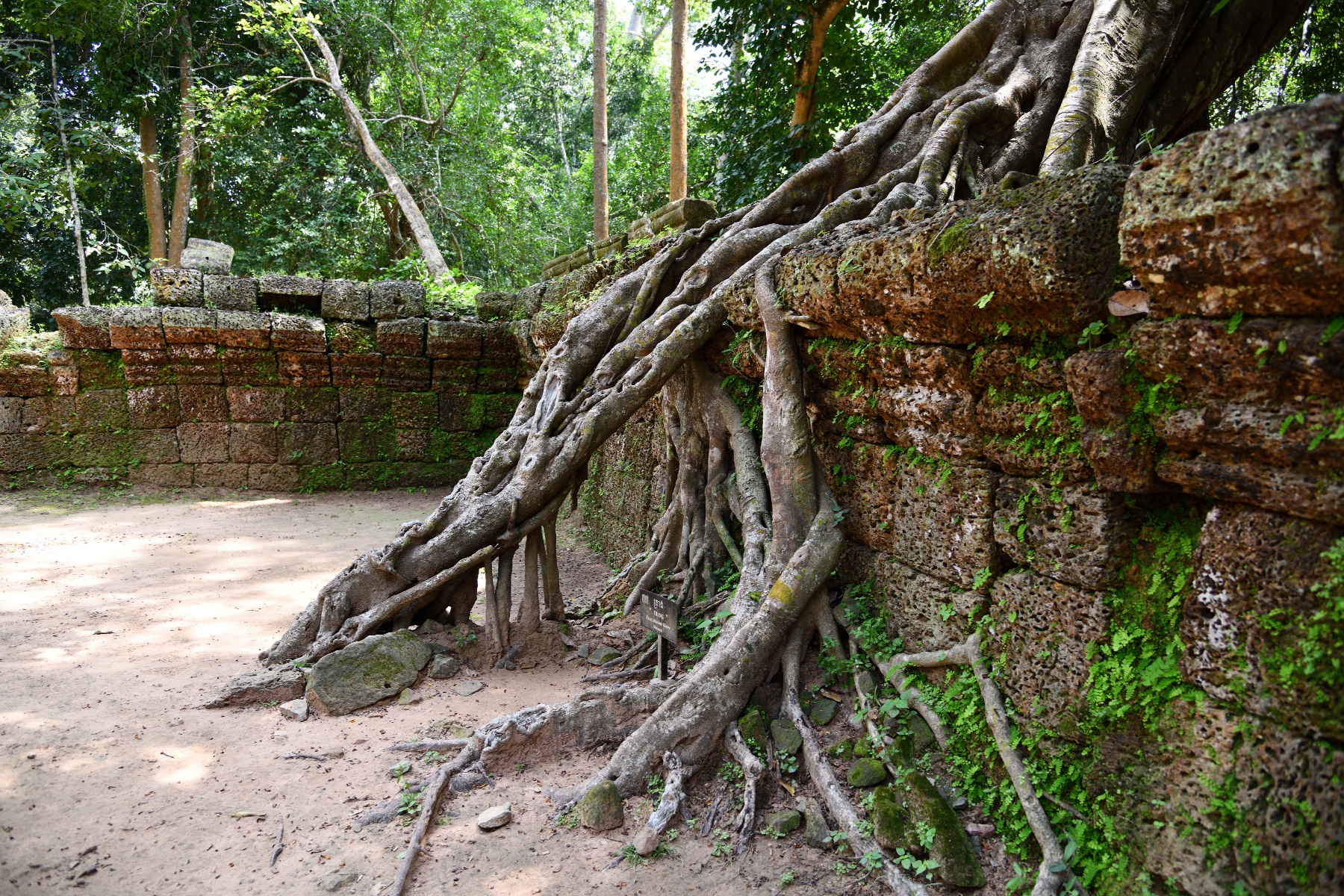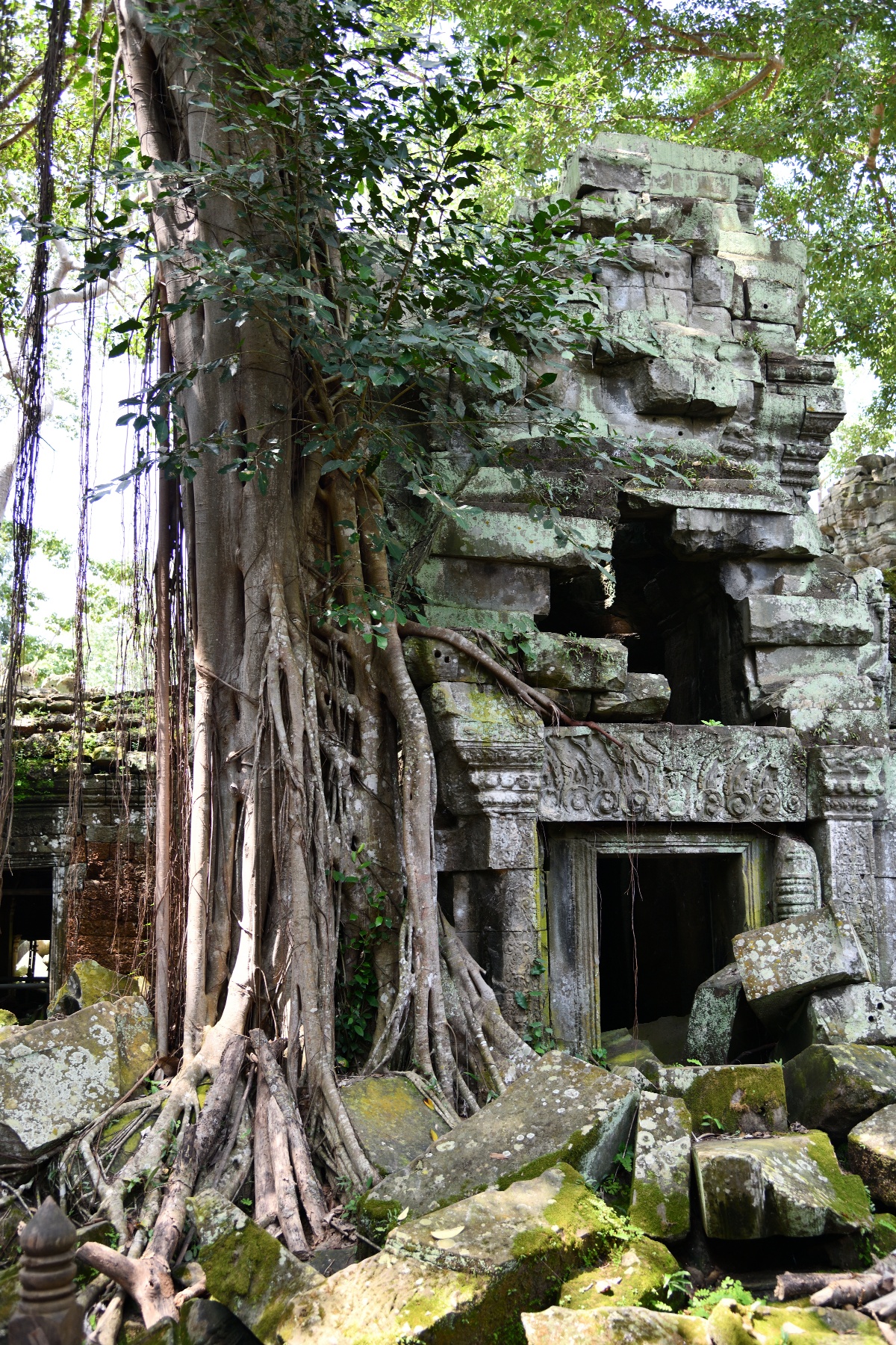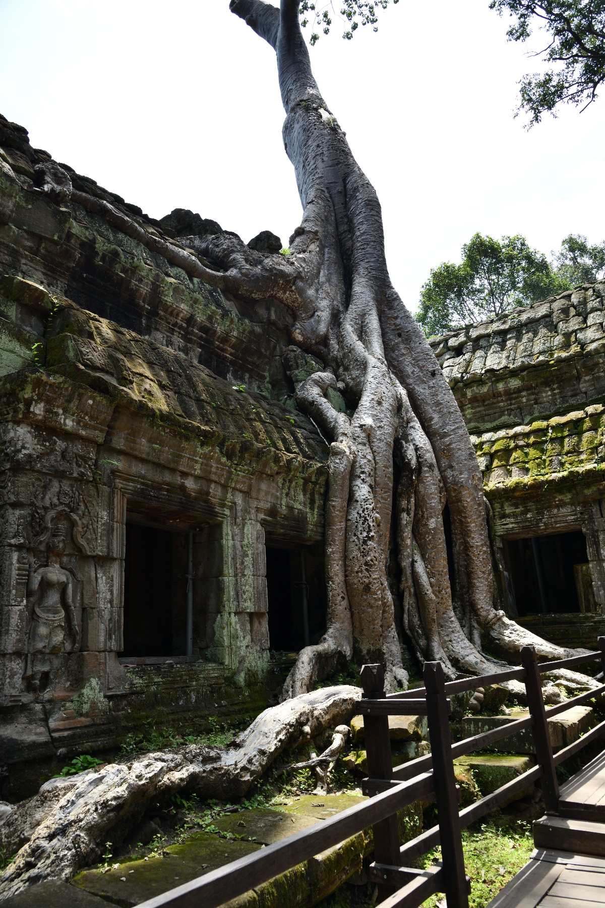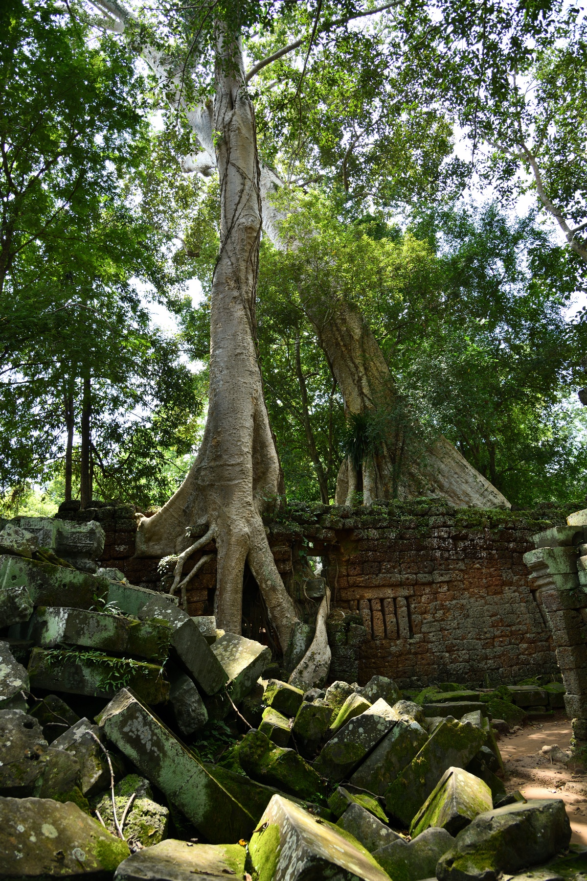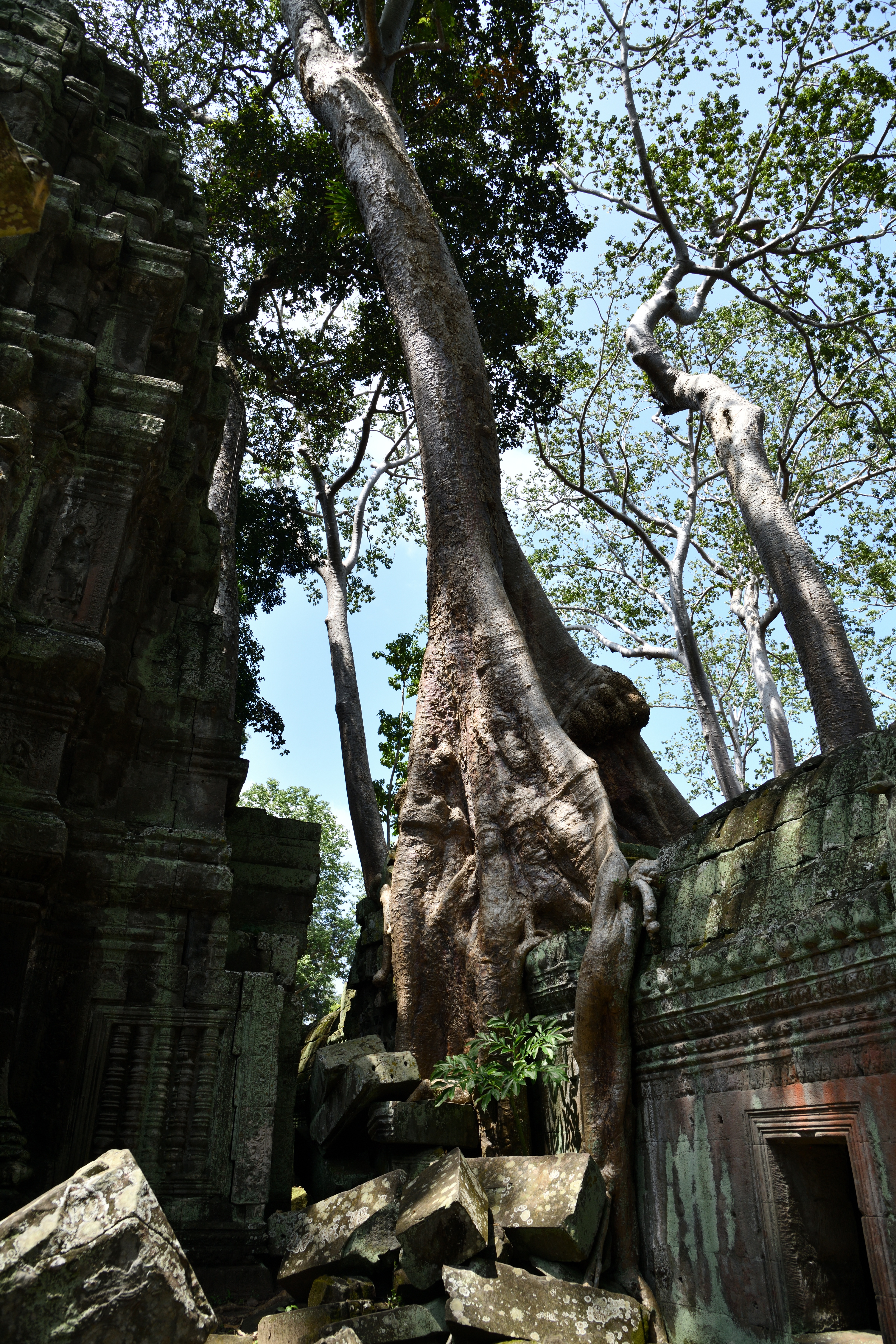 この遺跡は木々による浸食で有名だが、東門付近のこの木は中央の太い木と回りにまとわりついた細い木は別物らしい。