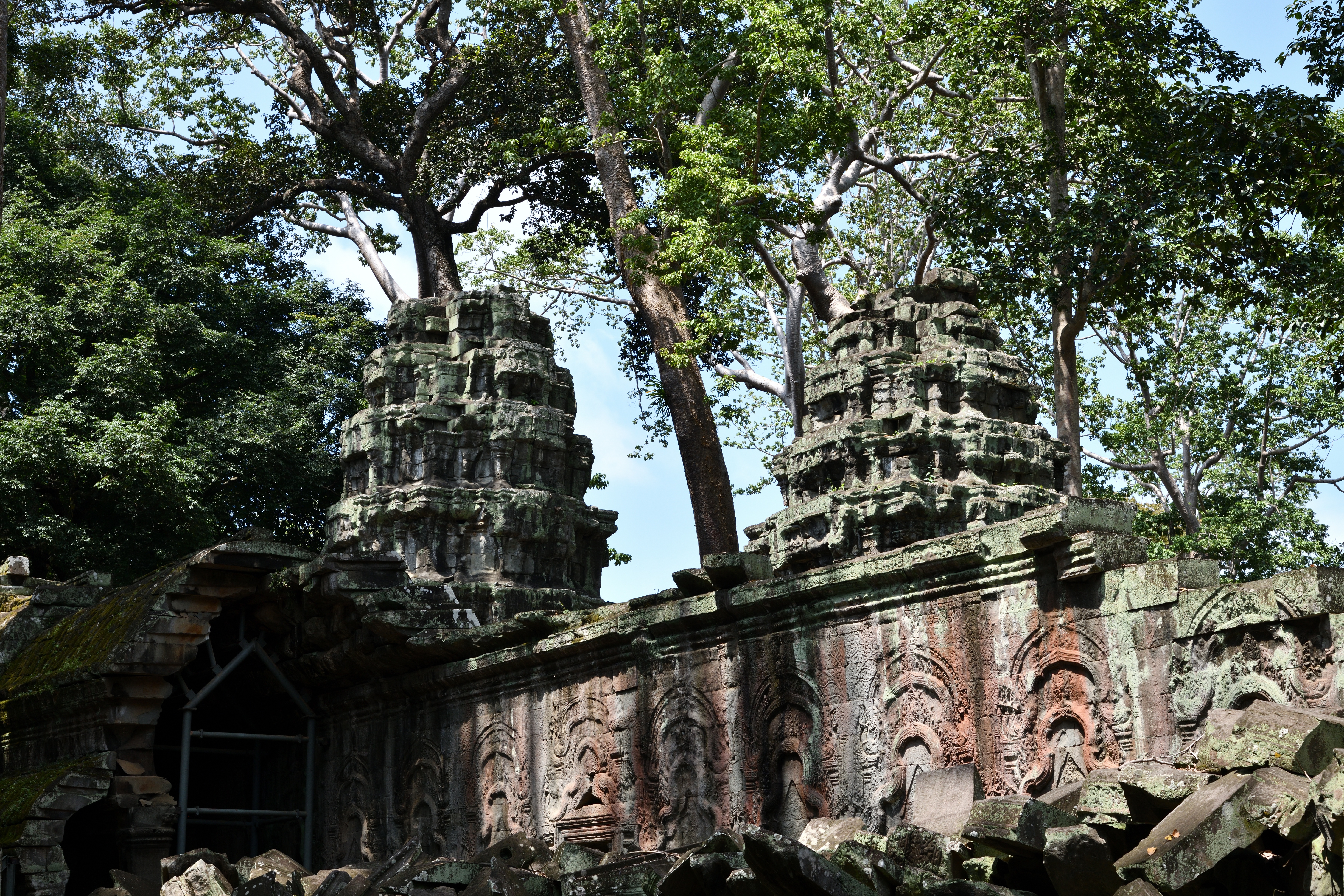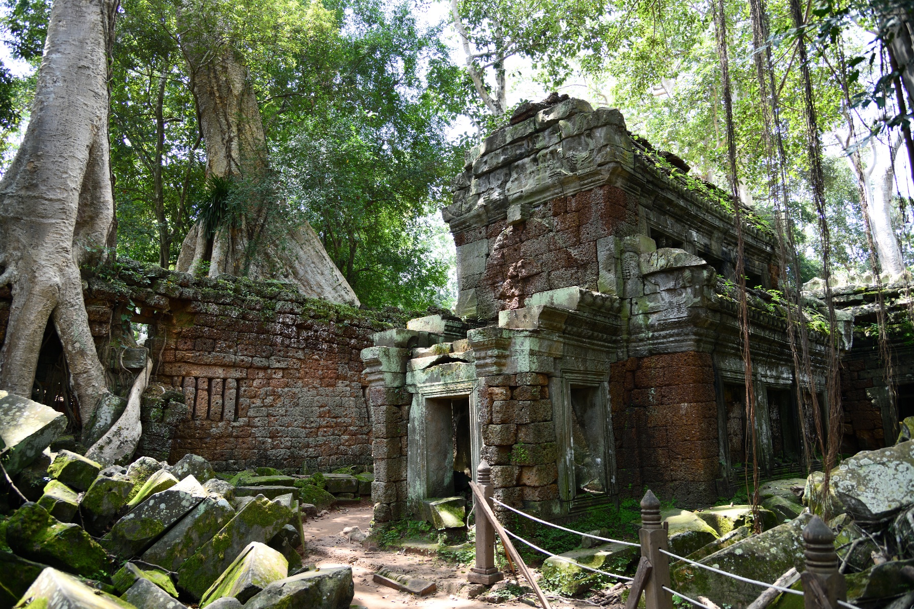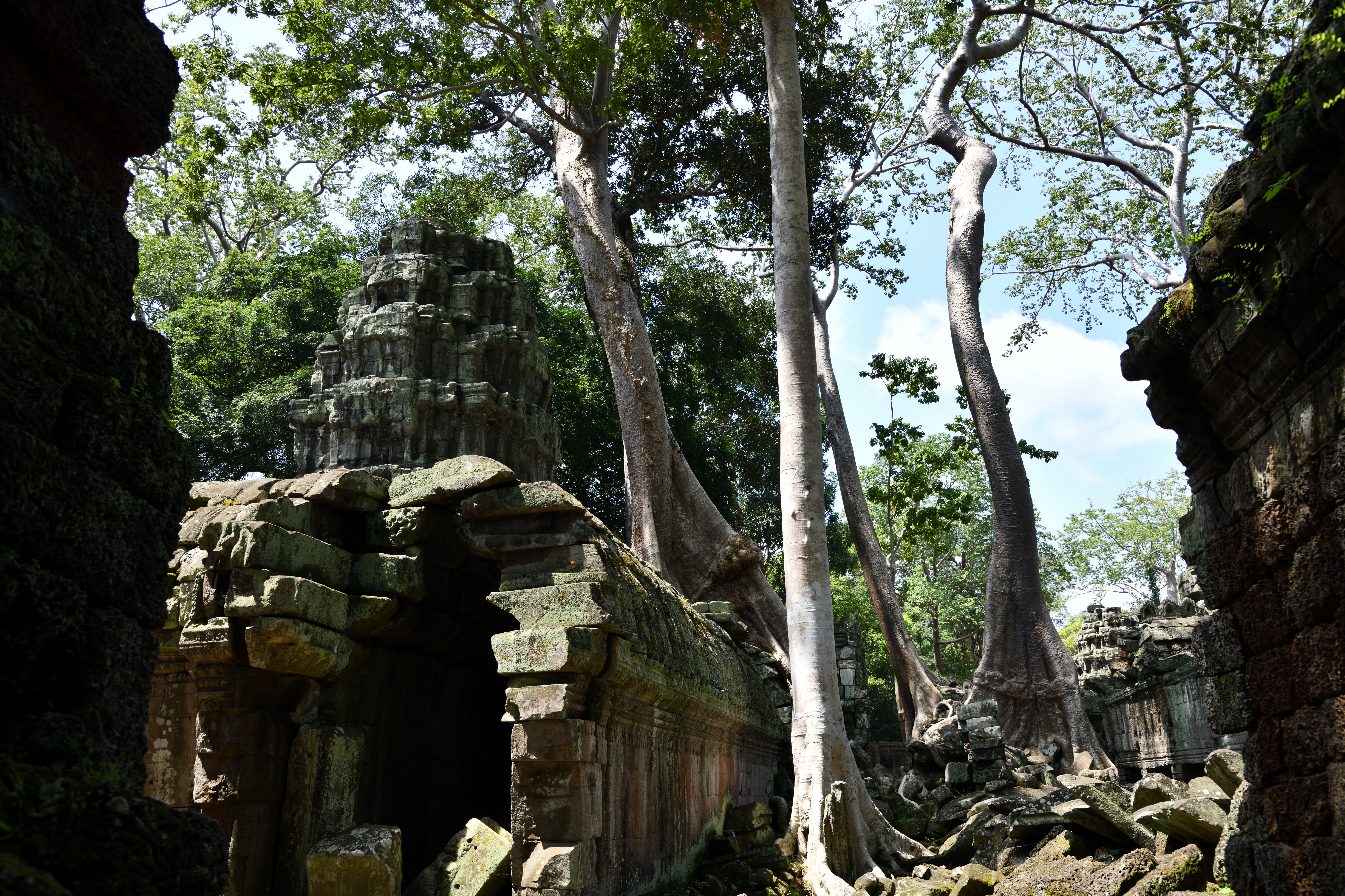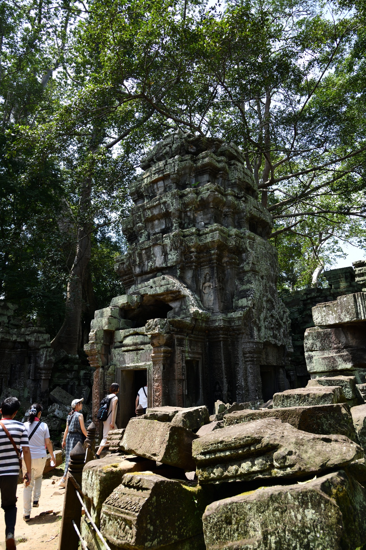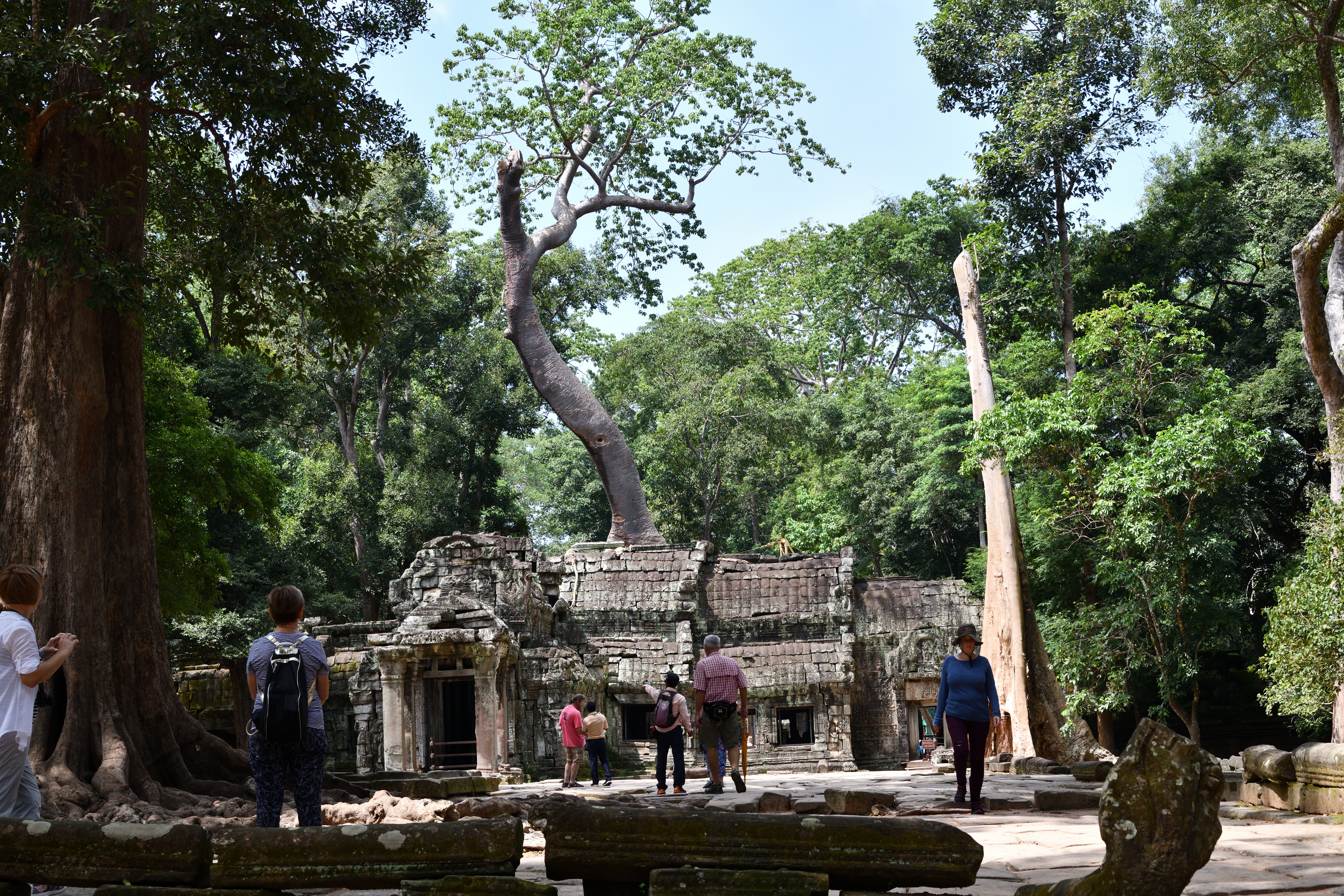この遺跡は木々による浸食で有名だが、東門付近のこの木は中央の太い木と回りにまとわりついた細い木は別物らしい。
