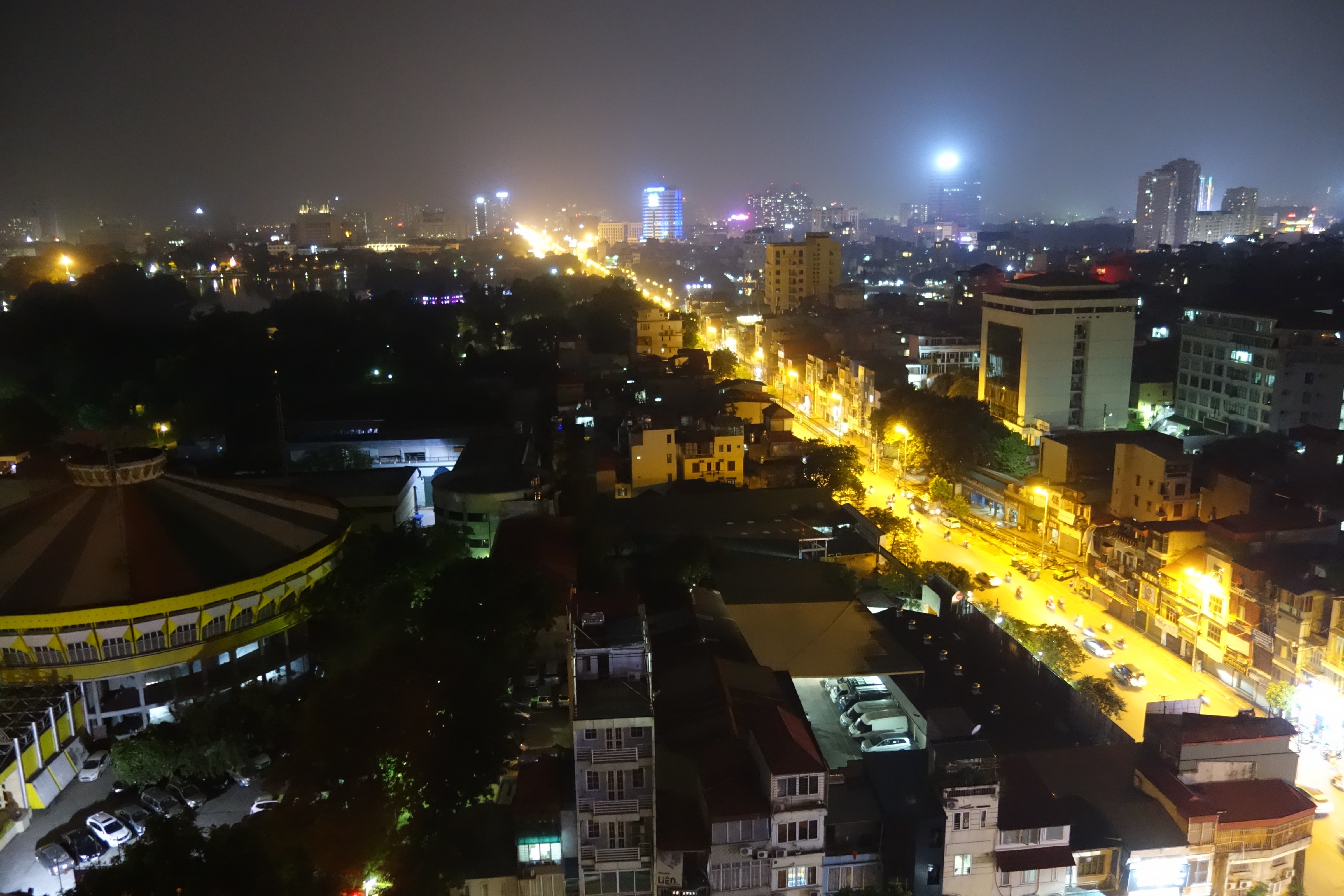 ニッコーハノイの夜景なのだが、左手奥の方で何かのイベントが行われているらしく、サーチライトが回ったり大きな音が聞こえていた。