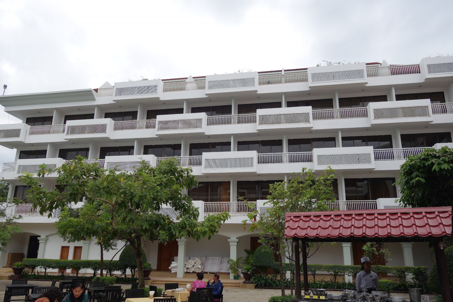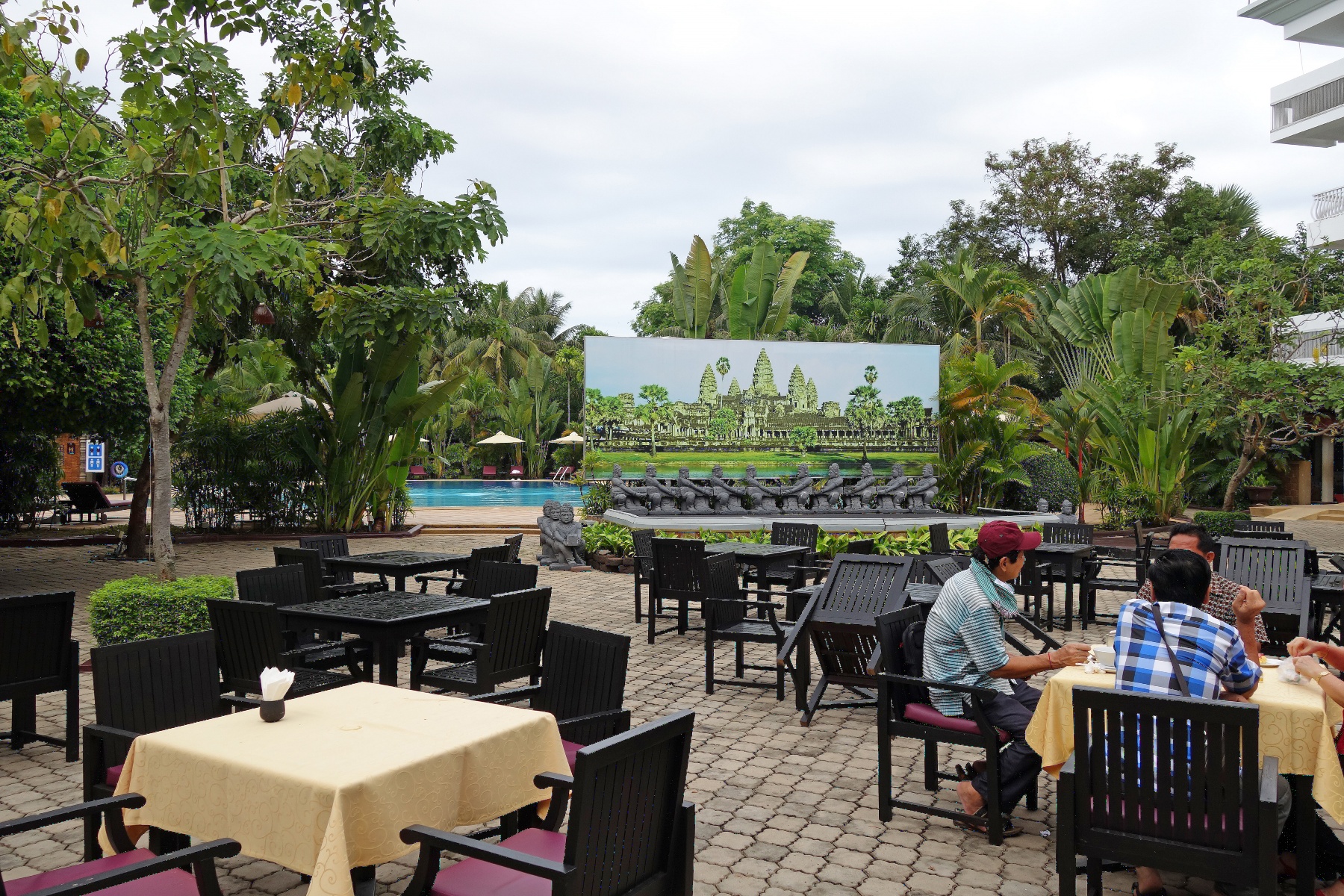 外の席から見たアンコール・センチュリー・リゾート&スパの建物はこんな感じ。バルコニーが互い違いになっている。