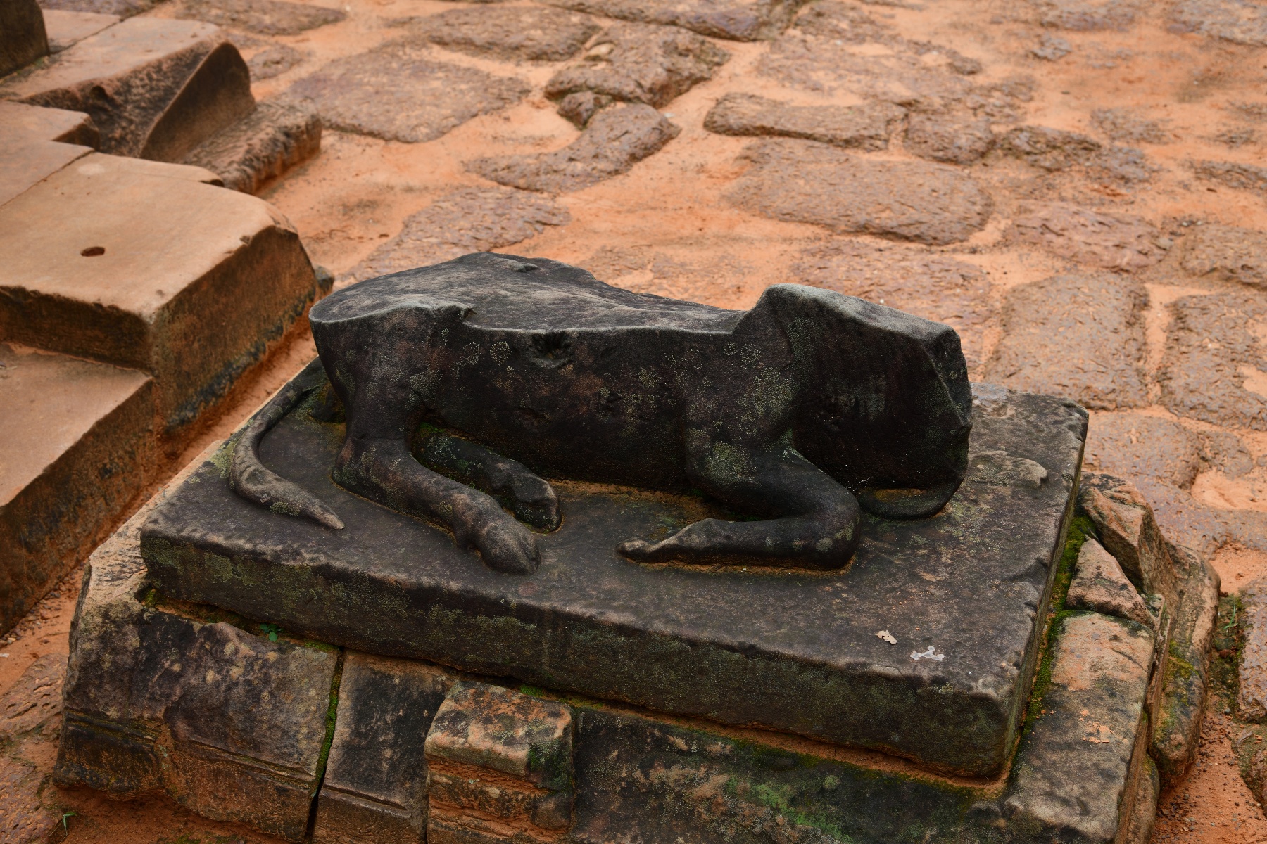 シヴァ神の乗り物である牛の像。内戦のため上半分が破壊されている。